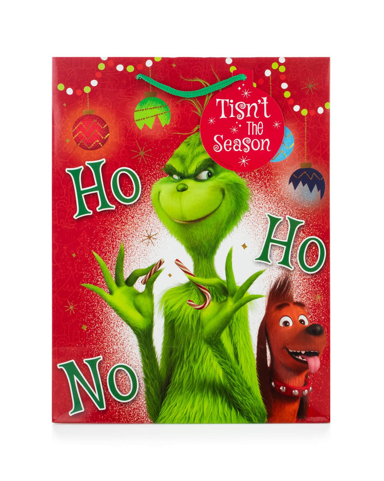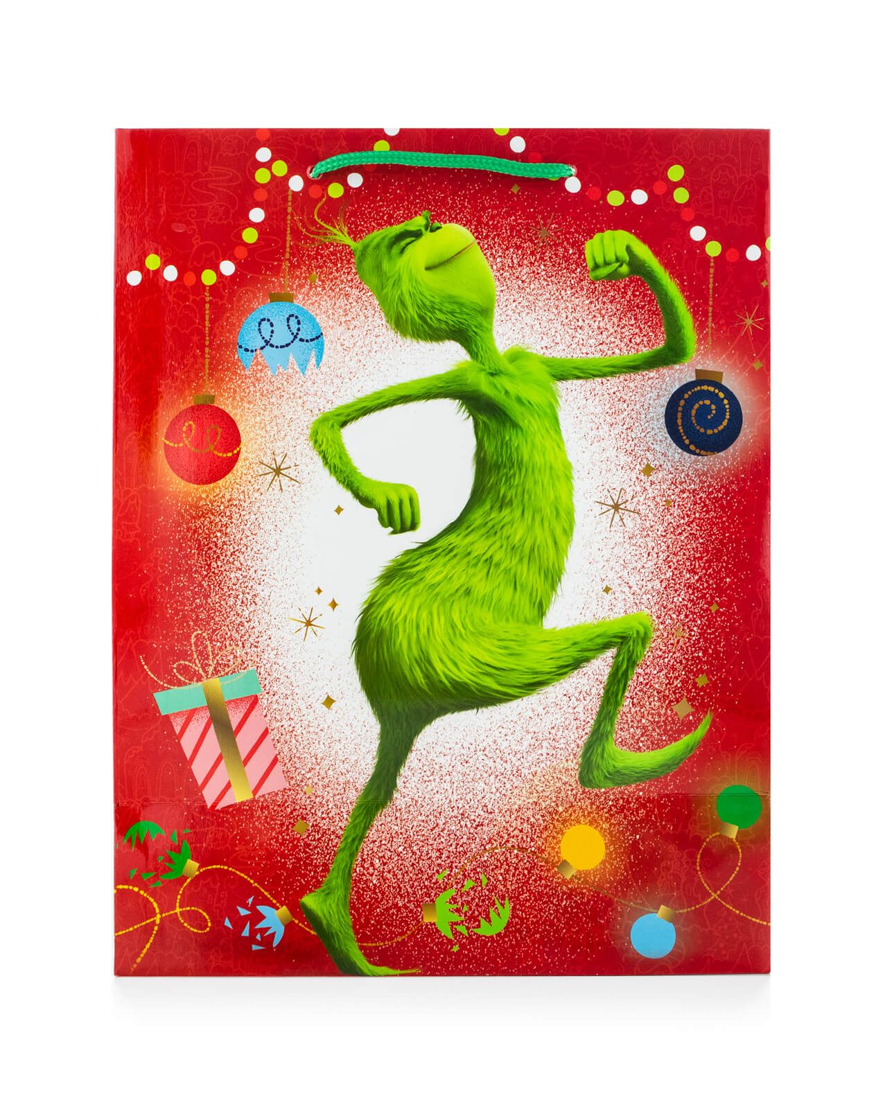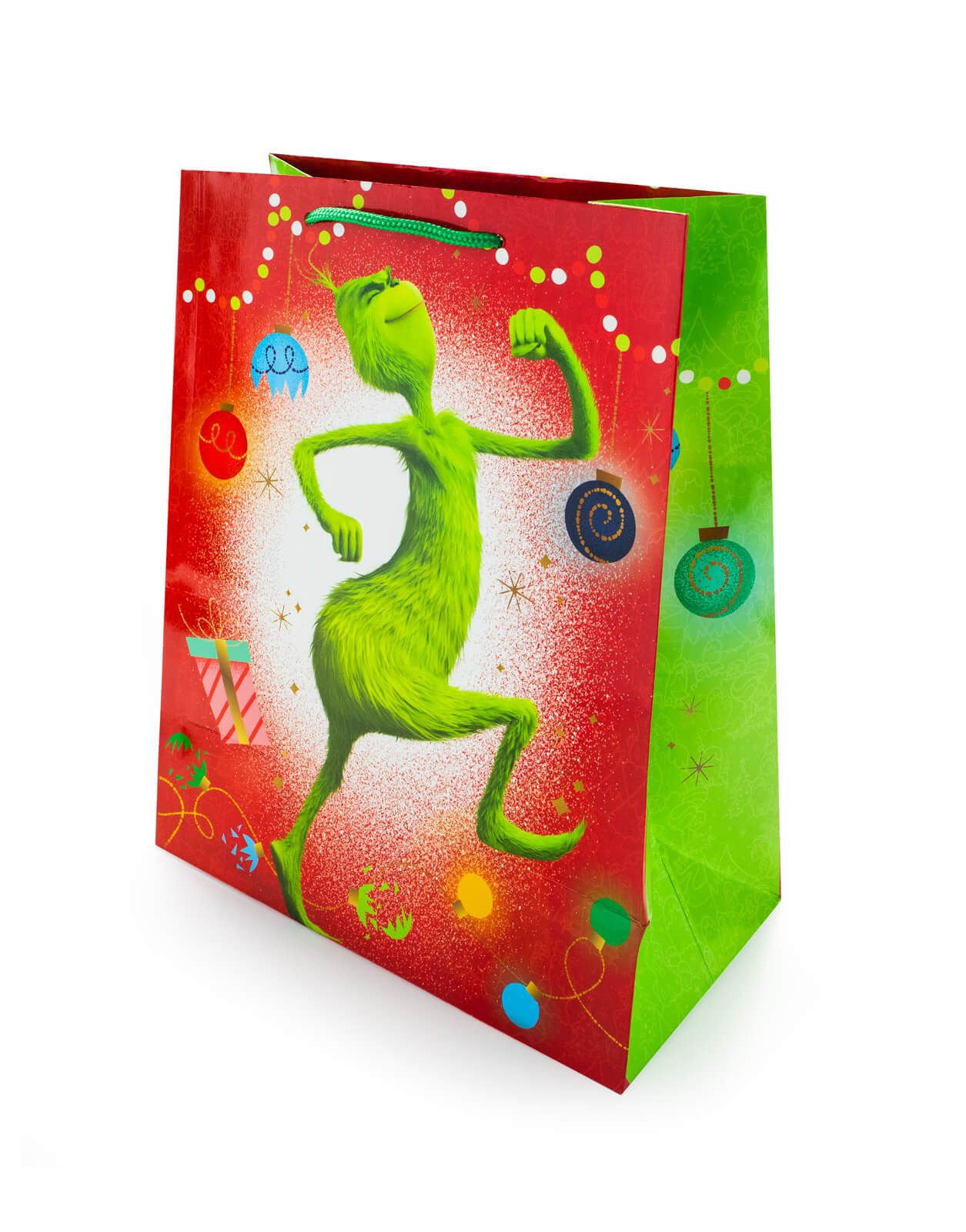 Grinch - torebka na prezent Torebka prezentowa Grinch w dużym formacie z wyrazistą grafiką kultowej postaci. Wykonana z grubszego papieru, z wygodnymi sznurkowymi uchwytami, prezentuje się oryginalnie i przyciąga uwagę swoim świątecznym charakterem. Szczegóły techniczne Wymiary: 26 x 33 cm Motyw: Grinch Uchwyty: sznurkowe Przeznaczenie: torebka prezentowa Licencjonowany produkt Produkt na oficjalnej licencji Dr. Seuss.