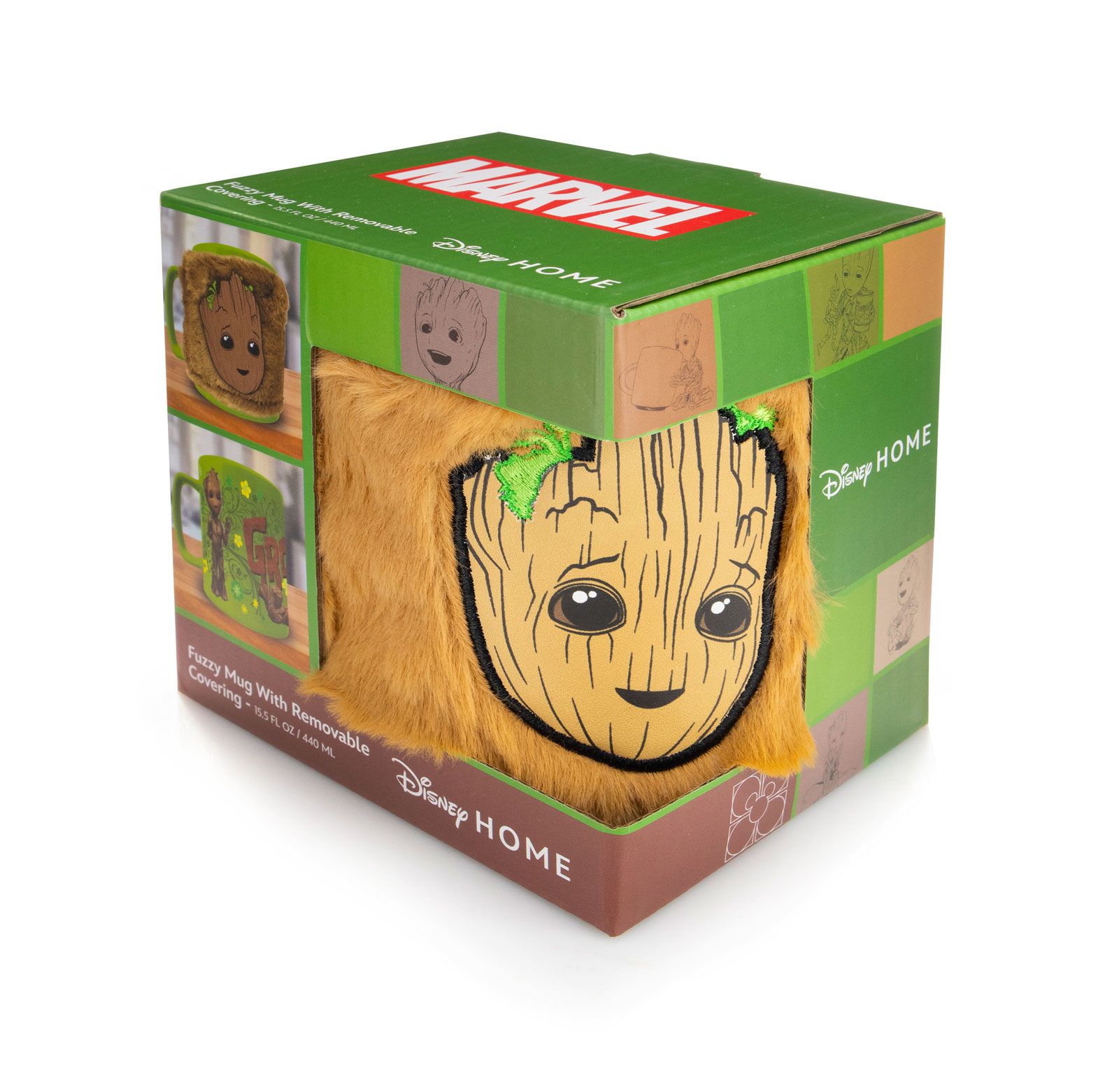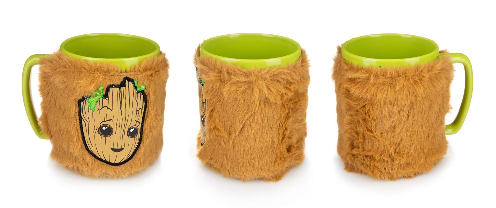 Groot Face - kubek w futerku Uroczy kubek z motywem Groota z serii Strażnicy Galaktyki. Wyposażony w futerkową, zdejmowaną osłonę, idealny na gorące napoje. Wykonany z trwałej ceramiki. Szczegóły techniczne: Materiał: Ceramika Pojemność: 458 ml Czyszczenie: Osłona zdejmowana, myć ręcznie Licencjonowany produkt Oficjalny produkt Marvel, doskonały na prezent.