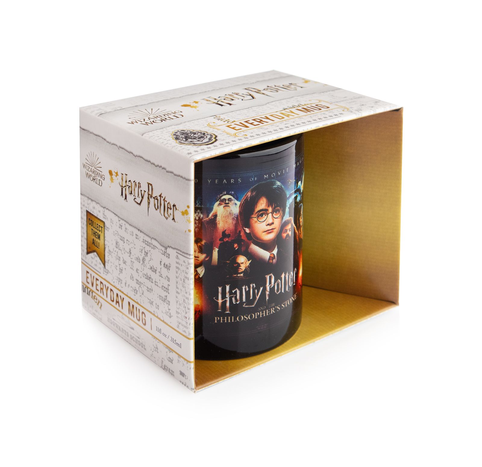 Harry Potter 20 Years Of Movie Magic czarny kubek 330 ml Oficjalny kubek ceramiczny z limitowanym motywem 20-lecia filmów Harry Potter. Czarna ceramika, złoty nadruk, pojemność 330 ml. Zalecane mycie ręczne, nie nadaje się do mikrofalówki. Idealny dla fanów magii, kolekcjonerów i oferty prezentowej premium. Pojemność: 330 ml Materiał: czarna ceramika Uwagi: tylko mycie ręczne Licencjonowany produkt Oryginalny produkt Harry Potter. Polecany do kolekcji i oferty filmowej.
