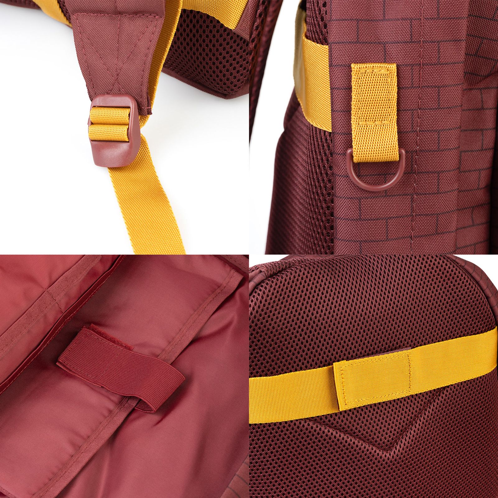 Harry Potter Platform 9 3/4 - plecak szkolny Numer katalogowy: MARE0381 Producent: Erik Plecak szkolny z motywem peronu 9 i 3/4 z serii Harry Potter. Wyposażony w komorę główną, dwie kieszenie zewnętrzne oraz wyściełaną kieszeń wewnętrzną. Zapinany na suwaki od góry i z przodu. Posiada regulowane paski na ramię, uchwyt oraz rzepy do mocowania na wózku. Szczegóły techniczne Materiał: poliester Wysokość: 48 cm Szerokość: 36 cm Głębokość: około 13 cm Komory: 1 główna, 2 zewnętrzne Oryginalny produkt na oficjalnej licencji Harry Potter, wyprodukowany przez Erik.