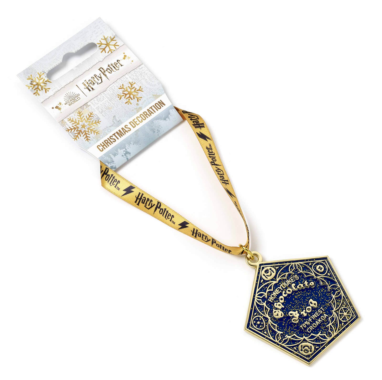 Ozdoba na choinkę Harry Potter Chocolate Frog Oryginalna ozdoba choinkowa z Twoim ulubionym motywem. Zaskocz swoją rodzinę i znajomych nietuzinkowymi zawieszkami na swojej choince. Dwustronna dekoracja choinkowa z emaliowanego stopu cynku z motywami z Harry'ego Pottera. Posiada materiałową zawieszkę, za pomocą której z łatwością umieścisz ją na choince. Produkt posiada oficjalną licencję producenta.
