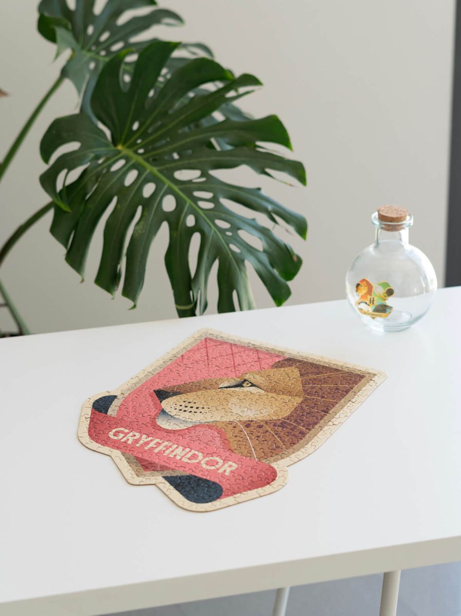 Puzzle Harry Potter Gryffindor-331 elementów W świecie układanek istnieją takie, które zwykłą rozrywkę przekształcają w prawdziwą magiczną podróż. Nasze puzzle Harry Potter to idealna propozycja dla wszystkich wielbicieli młodego czarodzieja. Składający się z 331dokładnie zaprojektowanych elementów obraz, po ułożeniu, prezentuje najbardziej ikoniczne symbole z filmowej sagi. Niezależnie od tego, czy jesteśfanem czy też początkującym entuzjastą, te puzzle z pewnością dostarczą Ci godzin czystej rozrywki i satysfakcji. A kiedy skończysz, otrzymasz nie tylko wspaniały arkusz dekoracyjny, ale także piękną pamiątkę. Szklana butelka zamykana na korek w której znajdują się puzzlesprawi, że cały zestaw będzie idealnym prezentem dla siebie lub bliskiej osoby. Zanurz się w czarodziejskim świecie z naszymi puzzlami! To oryginalny gadżet posiadający licencję producenta. Rozmiar puzzli po złożeniu:32,4 x 38,7 cm