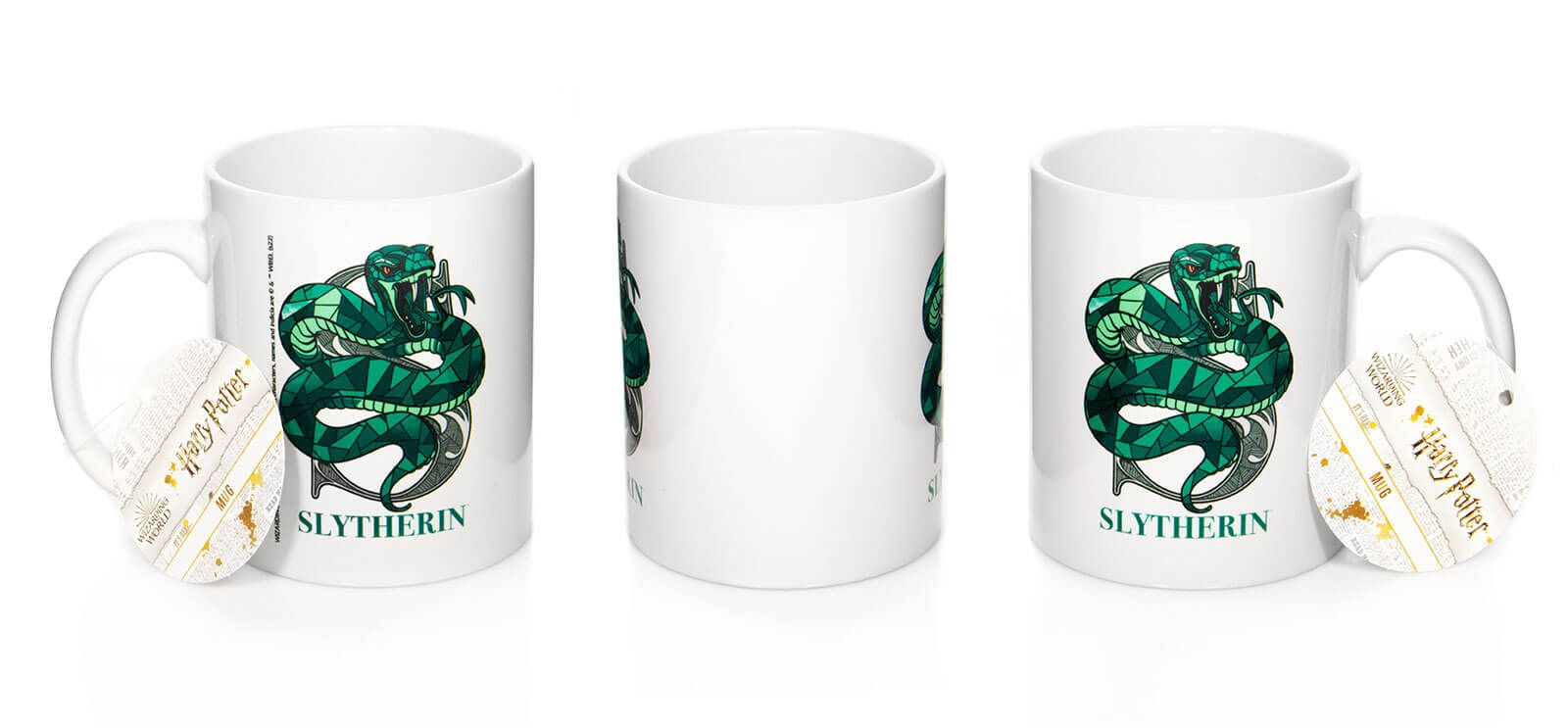 Kubek ceramiczny Harry Potter Herb Slytherinu Nasz kubek z uchem z ulubionym motywem to idealny pomysł na urozmaicenie kuchennej zastawy, oraz świetny pomysł na prezent dla bliskiej osoby. Nasz produkt jest markowy, posiada oryginalną licencję Jest stwor