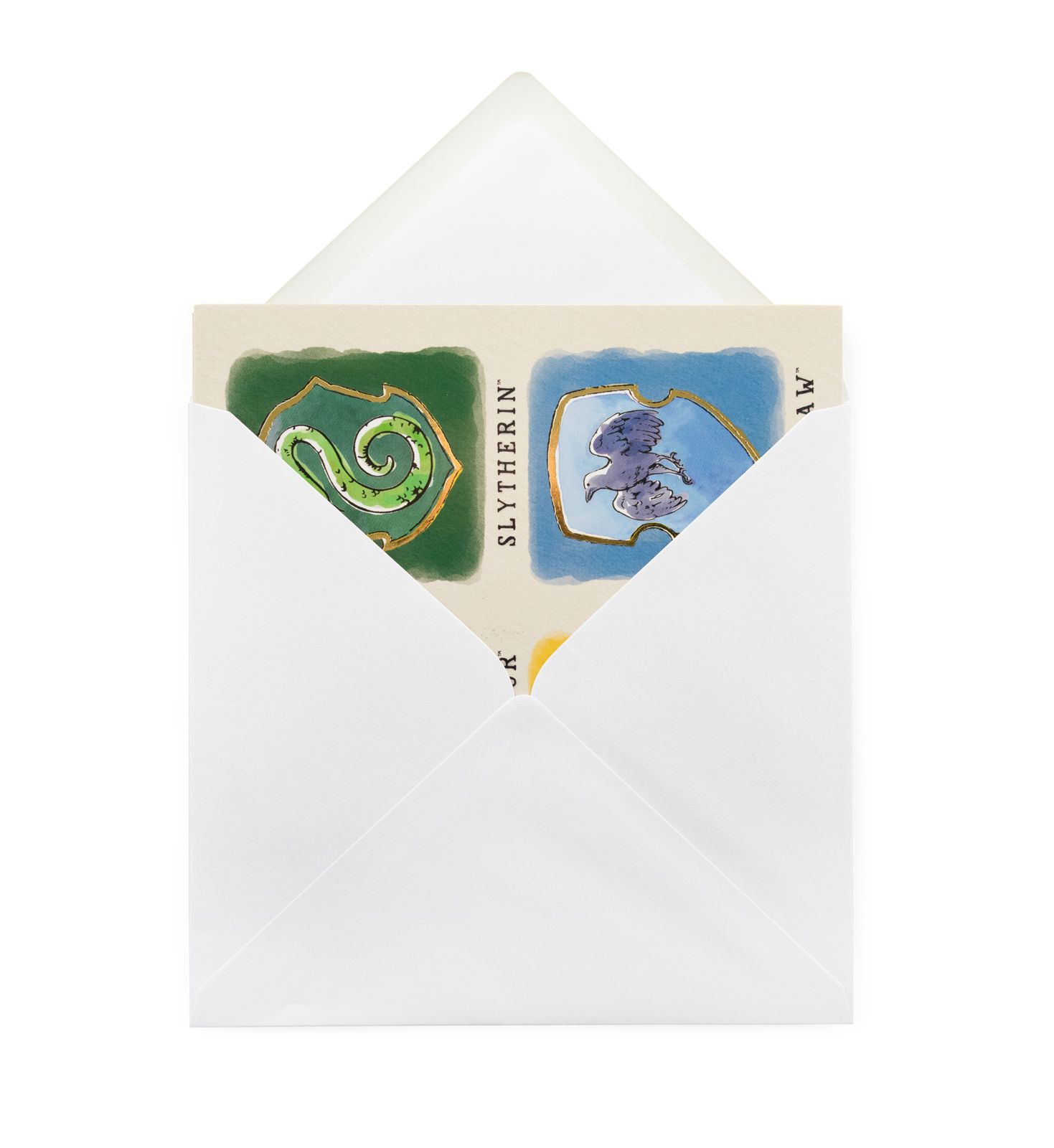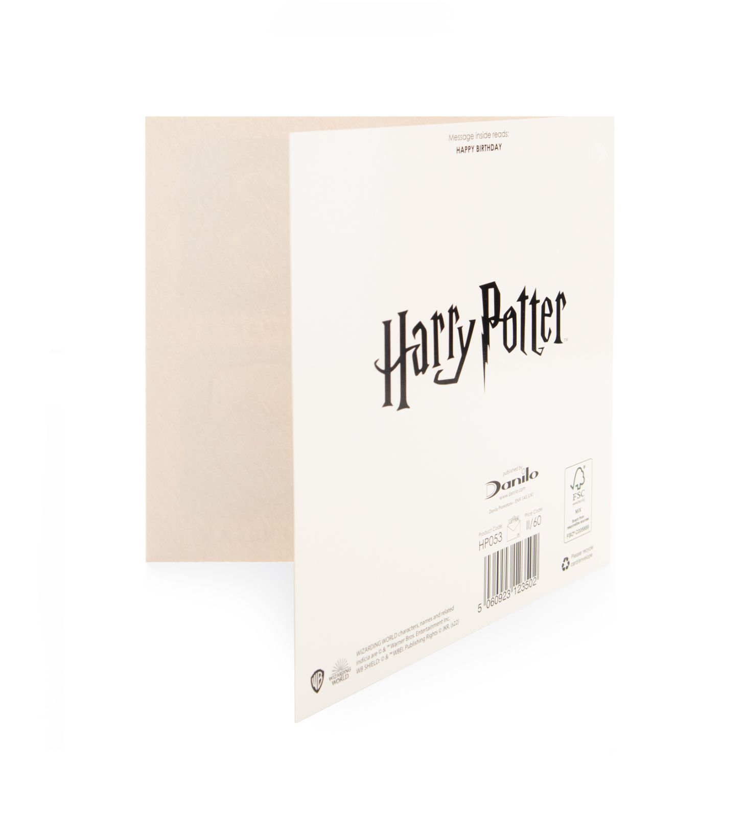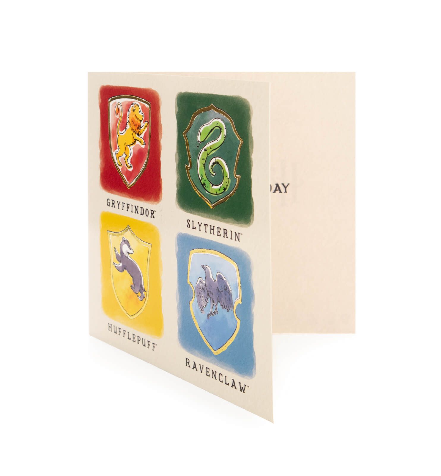 Harry Potter Herby Domów - kartka urodzinowa Kartka Harry Potter Herby Domów w kwadratowym formacie, ozdobiona herbami czterech domów Hogwartu. Intensywne kolory i licencjonowany motyw sprawiają, że kartka wyróżnia się estetyką i świetnie uzupełnia prezent. Szczegóły techniczne Wymiary: 16 x 16 cm Motyw: Herby Domów Hogwartu Układ: kwadratowy Przeznaczenie: kartka urodzinowa Licencjonowany produkt Oficjalny produkt Wizarding World.
