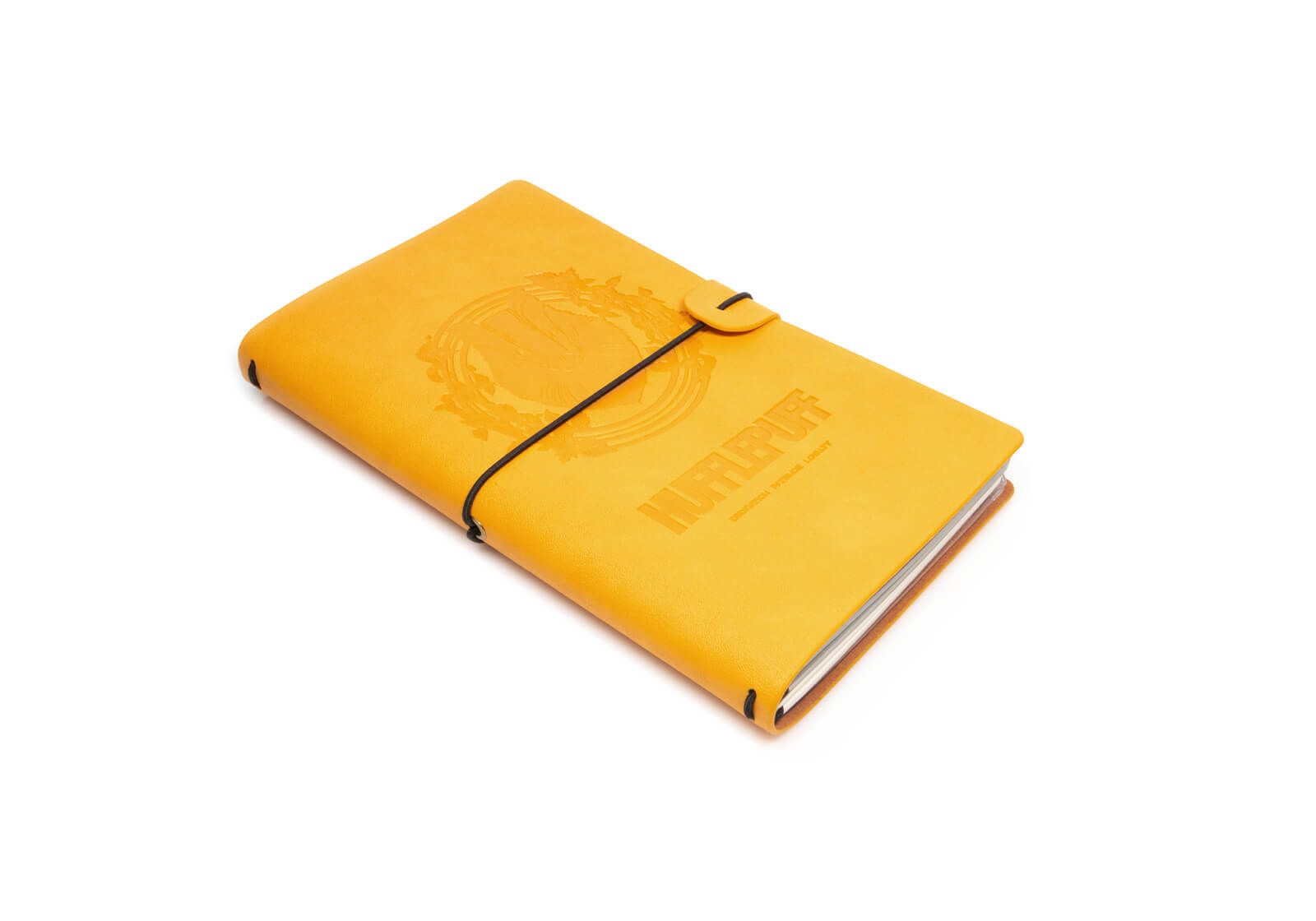 Notes skórzany Harry Potter Hufflepuff Świetny gadżet który wykorzystasz zarówno w szkole, jak i w pracy. Idealnie sprawdzi się też jako dziennik czy pamiętnik. Wykonany ze skóry syntetycznej. Na okładce wytłoczony jest wzór związany z głównym motywem. 144 kartki kropkowane iw szeroką linię. Zamykany na kolorową gumkę. Zawiera kieszeń ze strunowym zamkiem oraztrzy kieszenie na karty. Posiada oficjalną licencję producenta, to oryginalny gadżet! Wymiary zeszytu:12x19,5cm Marka: Grupoerik