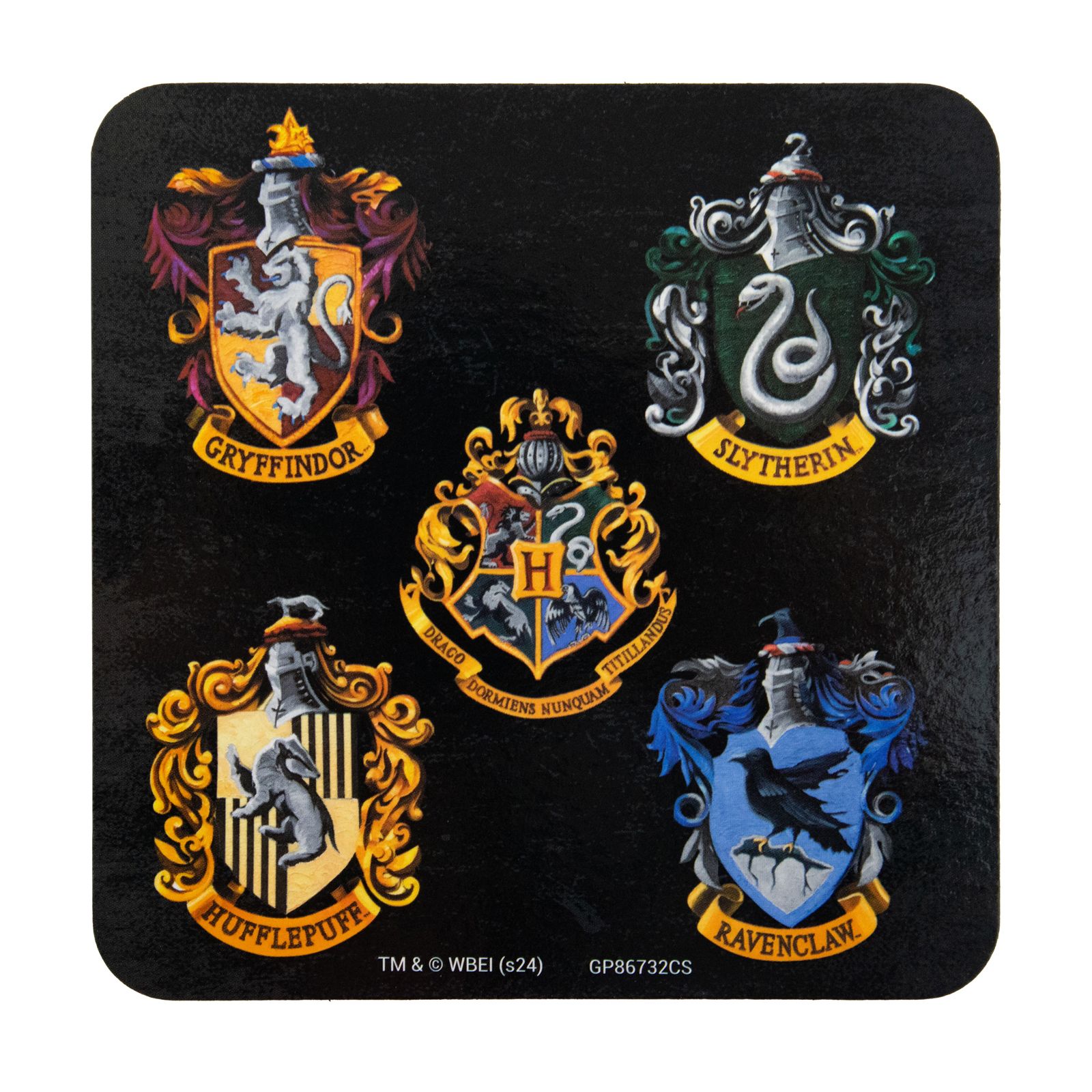 Zestaw prezentowy Harry Potter Colourful Crest Dark Zestaw prezentowy inspirowany światem Harry'ego Pottera, zawierający kubek o pojemności 315 ml, podkładkę i brelok z motywem herbów domów Hogwartu. Idealny prezent dla fanów magii. Szczegóły techniczne: Materiał: Ceramika, metal, ko