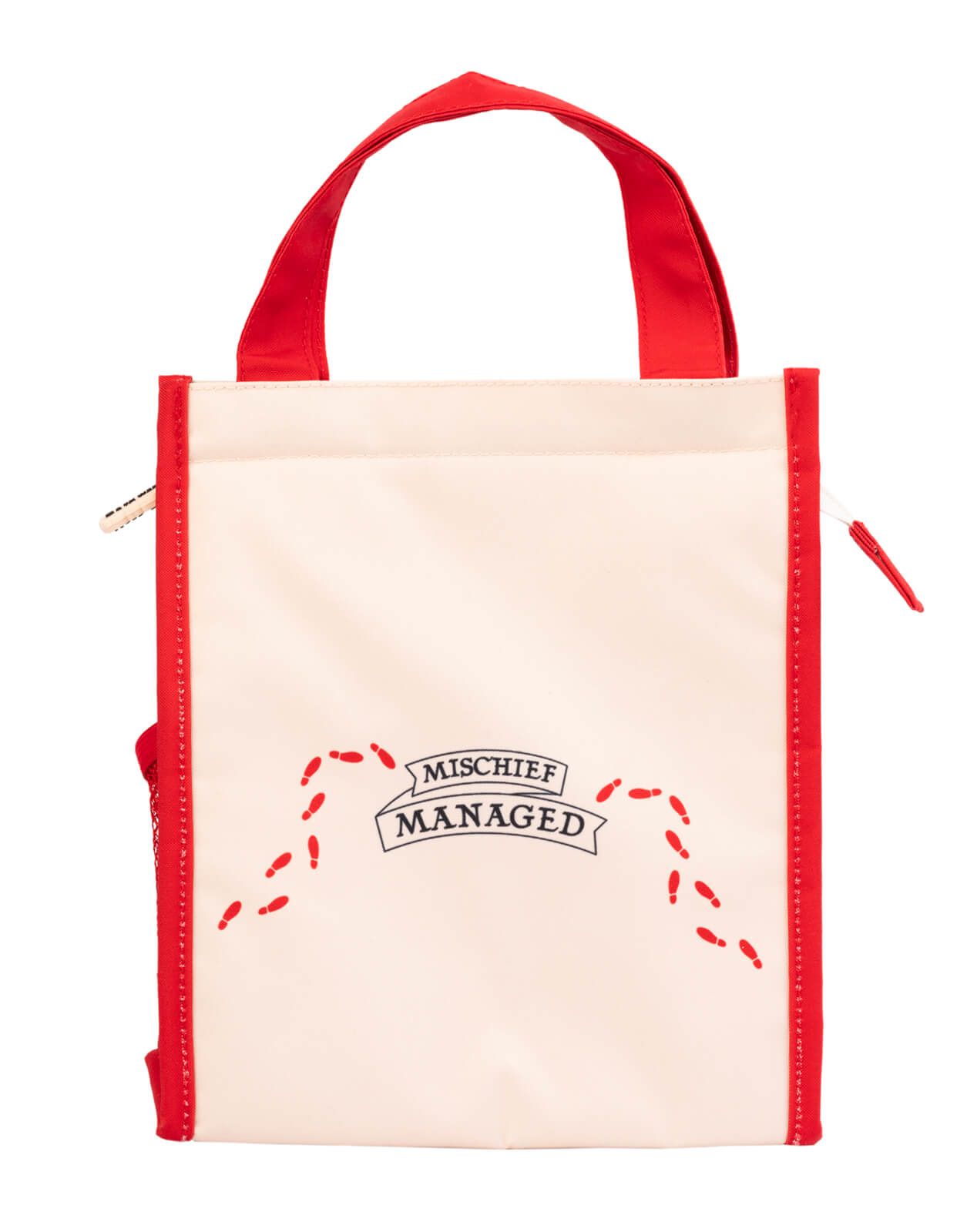 Torba termiczna Harry Potter Mapa Huncwotów Torba na lunch z Mapą Huncwotów to stylowy dodatek, który łączy funkcjonalność z wyjątkowym stylem. Materiał: Torba jest wykonana w 100% z poliestru, co gwarantuje jej wytrzymałość i odporność na uszkodzenia. Wewnętrzna aluminiowa podszewka pomaga utrzymać temperaturę Twojego posiłku, co jest niezwykle praktyczne. Wymiary: Komfortowy rozmiar 20 x 13 x 23 cm sprawia, że torba jest idealna na lunch na wynos. Przy niewielkiej wadze tylko 180g jest bardzo lekka i łatwa do noszenia. Funkcje: Torba jest wyposażona w praktyczną boczną kieszeń z siateczki, doskonałą na butelkę z napojem oraz uchwyty i zamknięcie na zamek błyskawiczny, które gwarantują łatwość użytkowania i bezpieczeństwo Twojego jedzenia. Kolor i wzór: Wyjątkowe połączenie kolorów ecru i czerwieni o oraz grafiki z symbolem Mapy Huncwotów sprawia, że ta torba na lunch zwraca na siebie uwagę i doda uroku Twojemu codziennemu lunchowi.