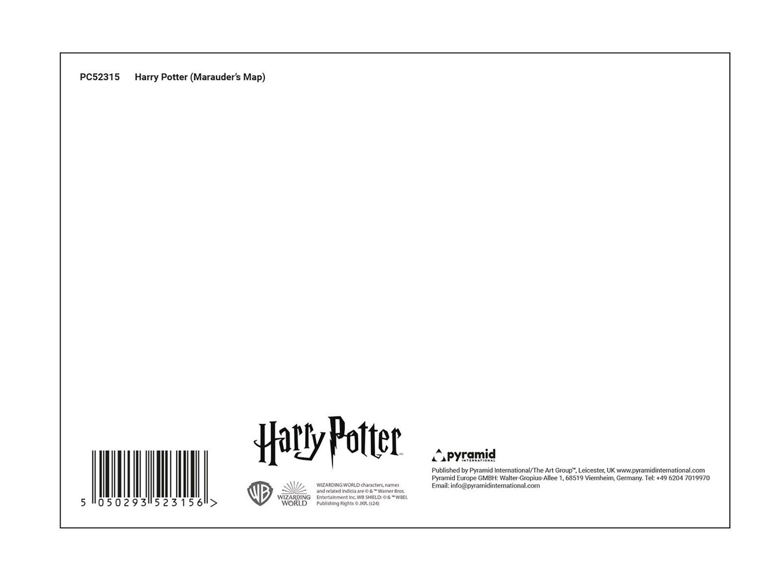 Pocztówka Harry Potter Marauder's Map Oficjalna pocztówka z motywem Mapy Huncwotów z serii Harry Potter. Idealna dla fanów magicznego świata, którzy chcą mieć pamiątkę ze swojego ulubionego uniwersum. Ta elegancka pocztówka świetnie nadaje się do wysyłania wiadomości lub jako kolekcjonerski gadżet. Dodaj odrobinę magii do swojego życia lub zaskocz bliskich wyjątkowym prezentem. Szczegóły techniczne: Wymiary: 14,8 x 10,5 cm Materiał: wysokiej jakości papier Druk w pełnym kolorze Oficjalnie licencjonowany produkt.