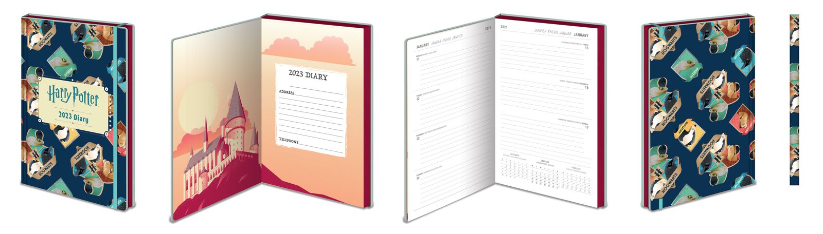 Dziennik Harry Potter Owl Post na 2023 rok Oryginalny i licencjonowany dziennik idealny dla dzieci, młodzieży i dorosłych. Twarda, zadrukowana fotografią okładka 348 stron z czytelnym kalendarium i miejscem na notatki Zamykany na kolorową gumkę Linika pełniąca rolę zakładki Miejsce na dane właściciela Nagłówki w sześciu językach: polski, angielski, hiszpański, francuski, włoski i niemiecki. Zeszyt świetnie sprawdzi się jako pamiętnik, dziennik, czy kalendarz do wpisywania ważnych dat i obowiązków. Zeszyt posiada oficjalną licencję producenta. Wymiary: 14,8x21 cm