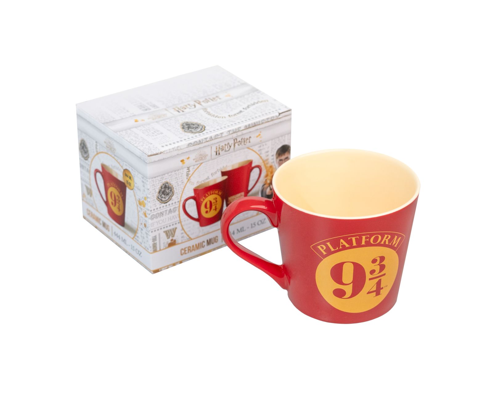 Harry Potter Peron 9 3/4 - kubek Unikalny kubek inspirowany magicznym światem Harry'ego Pottera, ozdobiony grafiką Peronu 9 3/4. Idealny dla fanów, którzy chcą przenieść odrobinę Hogwartu do codziennego życia. Stylowy design sprawia, że jest doskonałym dodatkiem do kolekcji każdego czarodzieja! Szczegóły techniczne Pojemność: 444 ml Materiał: Ceramika Wymiary: wysokość 9,2 cm, średnica górna 10 cm, średnica dolna 8 cm Nie nadaje się do zmywarki i mikrofalówki Oryginalny, licencjonowany produkt Harry Potter, idealny na prezent dla każdego fana serii.