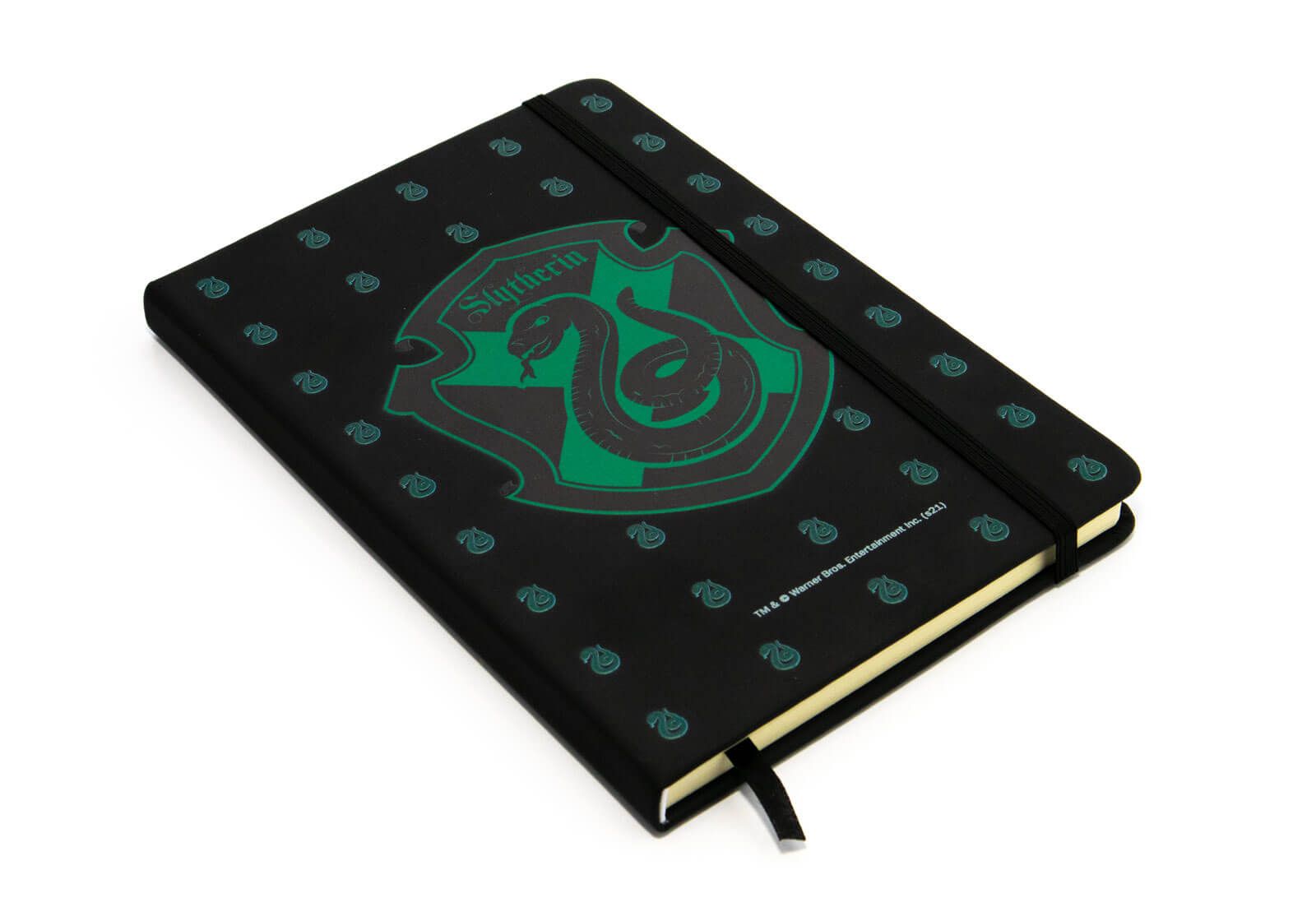 Notes A5 Harry Potter Slytherin Świetny gadżet który wykorzystasz zarówno w szkole, jak i w pracy. Idealnie sprawdzi się też jako dziennik czy pamiętnik. Twarda okładka, zadrukowana fotografią o intensywnych i wyrazistych barwach. 96 kartek w szeroką linię. Zamykany na kolorową gumkę. Posiada oficjalną licencję producenta, to oryginalny gadżet! Wymiary zeszytu:14,8x21cm