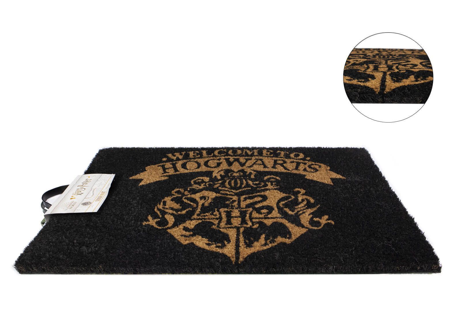 Wycieraczka Harry Potter Welcome To Hogwarts Z naszą wycieraczką zachowasz czystość w domu i zaskoczysz znajomych już przy wejściu. Wycieraczka z oryginalnym motywem to nie tylko przydatny gadżet, ale też świetna ozdoba mieszkania. Wykonana jestz naturalnego włosia kokosowego. Została podklejona gumą aby zapobiec poślizgowi. Jest oryginalna, to oficjalne, licencjonowane wydanie. Rozmiar wycieraczki: 40x60 cm. Wysokość: 1,5 cm. Marka: Pyramid Posters