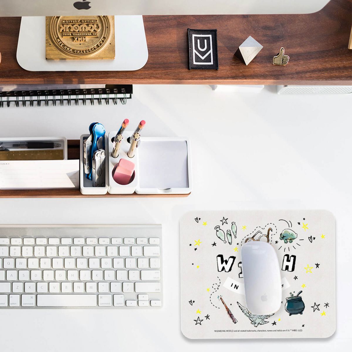 Podkładka pod myszkę Harry Potter Witch in Training Oryginalne podkładki na biurko pod myszkę zadrukowane oryginalnymi grafikami. Twoje ulubione, popularne motywy na podkładce umilą Ci pracę. Podkładki chronią Twoje biurko przed otarciami i rysami. To oryginalny, oficjalny gadżet z gwarancją producenta. Szczegóły techniczne: Podkładka ma wymiary:18x22 cm.