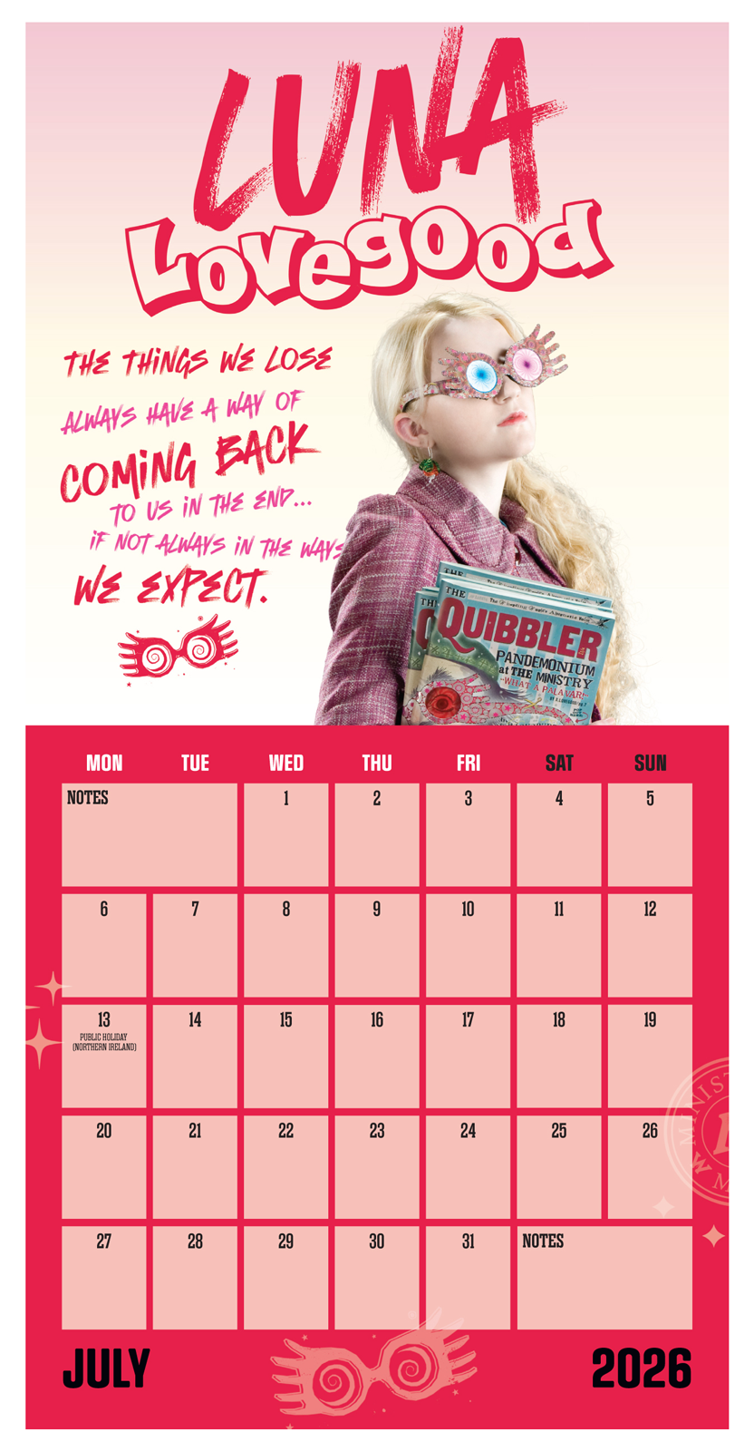 Oficjalny mini kalendarz ścienny Harry Potter na 2026 rok Oryginalne i licencjonowane kalendarze ścienne z motywem Harry Pottera. Każdy posiada 12 rozkładanych stron o wymiarach 18x18 cm. Na każdej karcie znajduje się barwna grafika z bohaterami i czarodziejskimi scenami, a pod grafiką wygodne kalendarium. Papier jest trwały, grafiki ostre, kolory żywe wszystko w formacie idealnym do małych przestrzeni. Nagłówki są w języku angielskim. Oficjalne wydanie 12 wyjątkowych ilustracji z uniwersum Harryego Pottera jeden miesiąc, jedna magia. Oryginalny produkt z licencją, perełka dla fanów i miłośników magii.