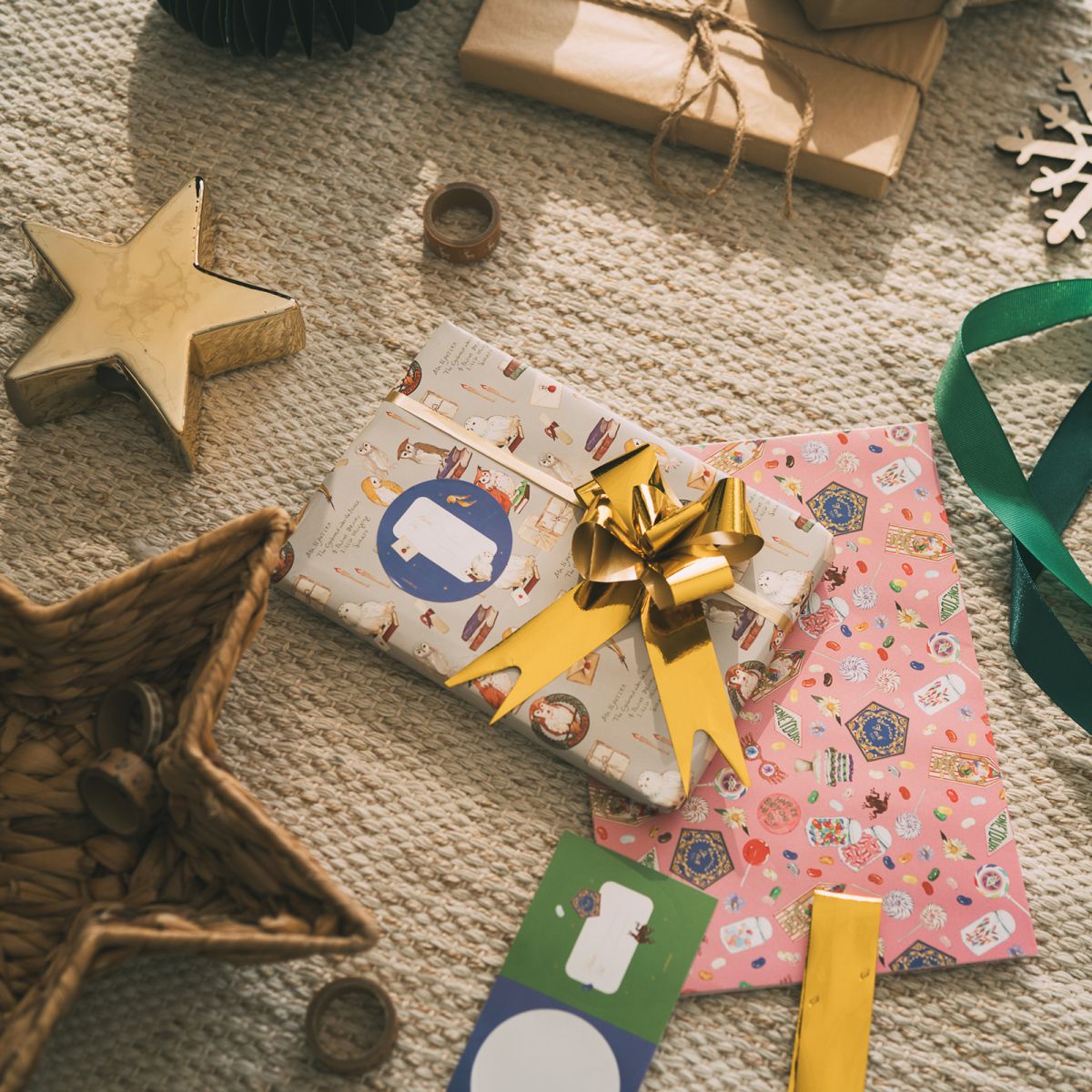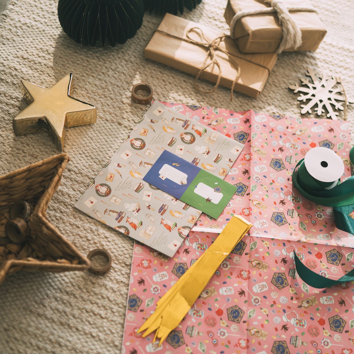 Harry Potter - papier do pakowania Przenieś magię Hogwartu do każdego prezentu z papierem do pakowania inspirowanym światem Harry'ego Pottera! Zestaw zawiera dwa arkusze o wymiarach 50 x 70 cm i gramaturze 70 g/m?, ozdobione motywami z kultowej serii. W komplecie znajdziesz również papierową kokardkę i naklejki, które dodadzą uroku każdemu opakowaniu. Idealny dla fanów Harry'ego Pottera i miłośników magicznych detali. Szczegóły techniczne 2 arkusze papieru (50 x 70 cm) Gramatura: 70 g/m? W zestawie kokardka i naklejki Oficjalnie licencjonowany produkt Harry Potter.