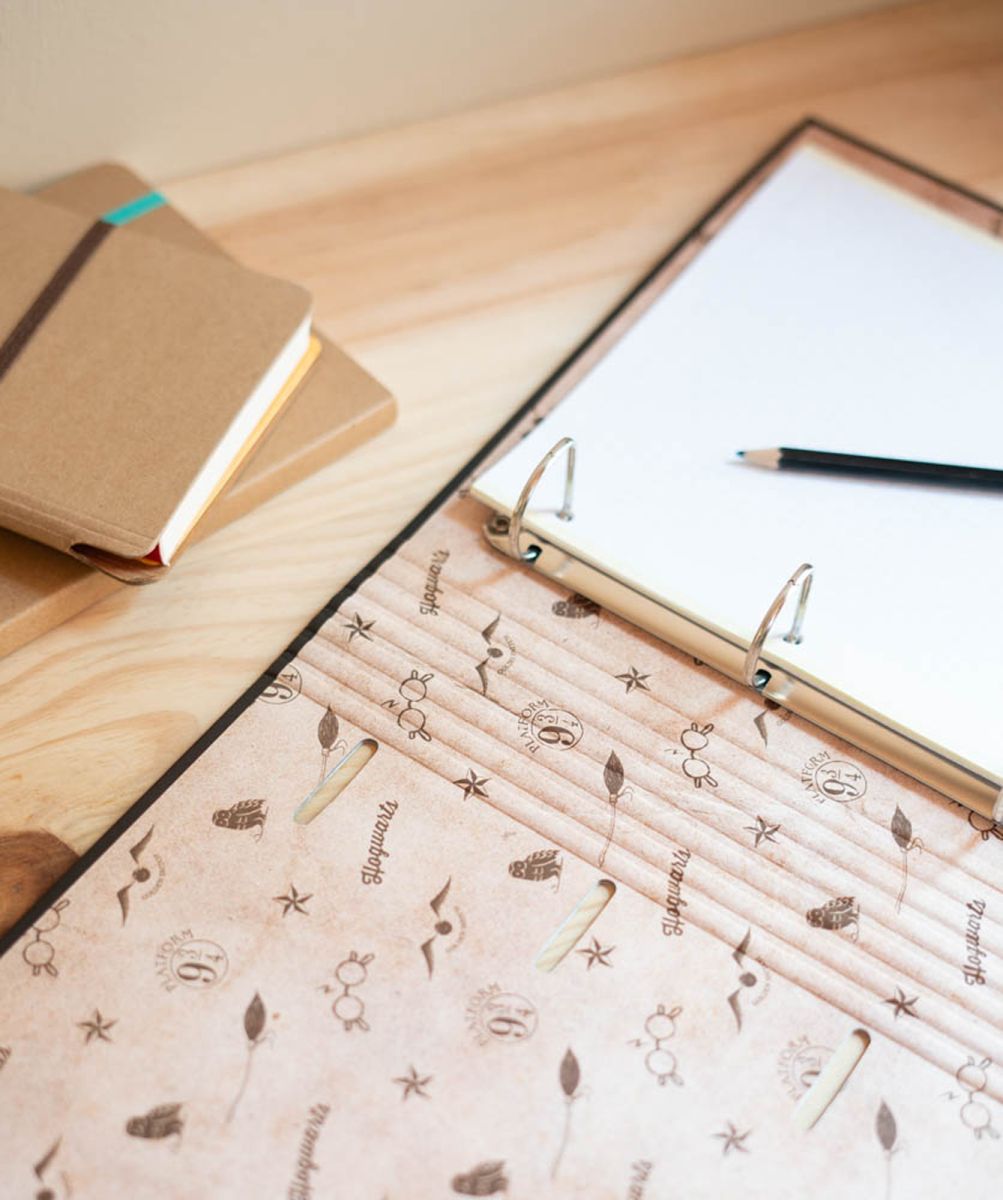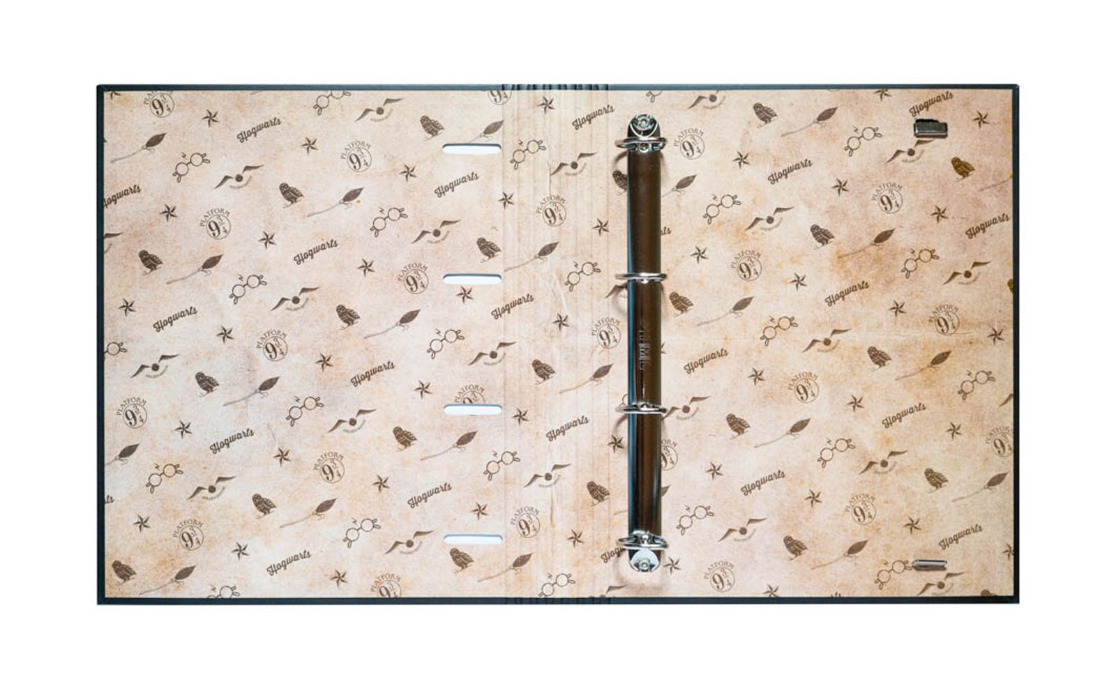 Segregator A4 Harry Potter Segregator A4 z motywem Harryego Pottera wykonany z twardej tektury (2 mm), pokrytej matowym laminatem o gramaturze 150 g/m?. Posiada 4-ringowy mechanizm, gumkę 9 mm i wewnętrzny nadruk inspirowany światem Hogwartu. Praktyczny i efektowny doskonały do szkoły lub biura. Specyfikacje produktu: Wymiary: 32 x 27,5 cm Materiał: tektura + laminowany papier Zapięcie: gumka 9 mm Mechanizm: 4 ringi Licencjonowany produkt oficjalny gadżet z serii Harry Potter.
