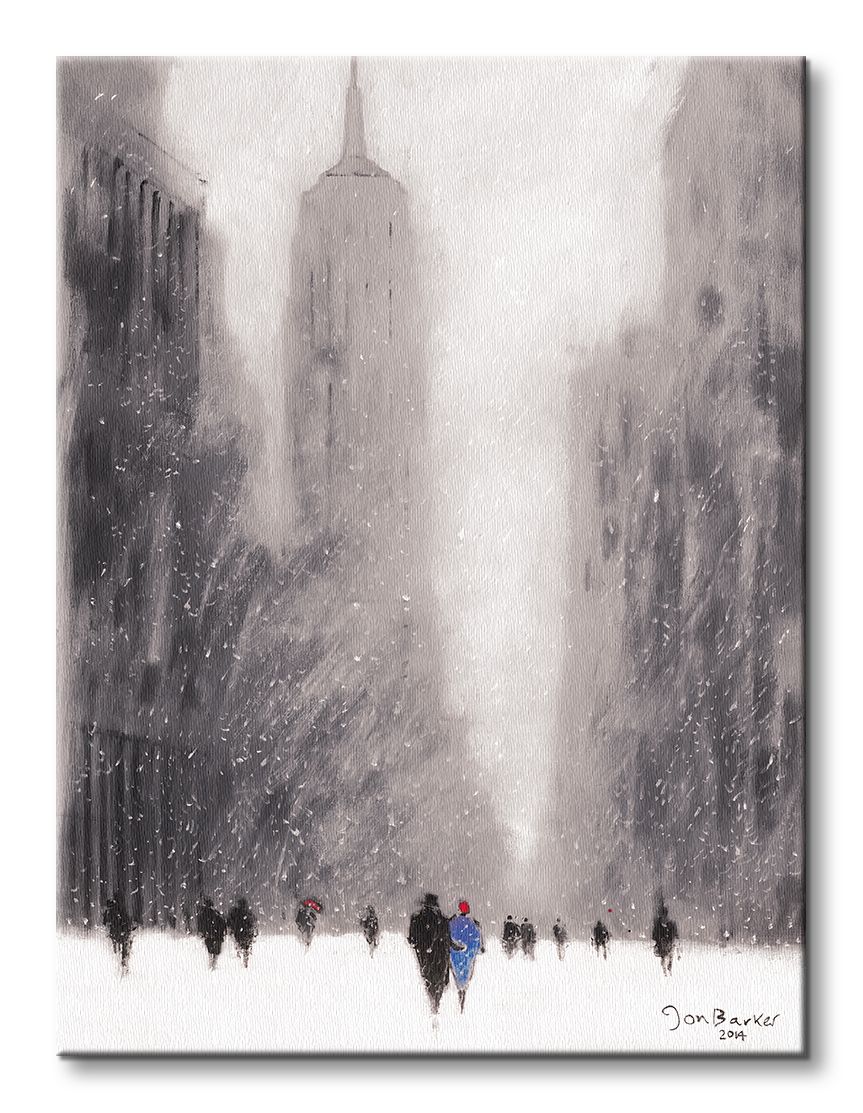 Obraz na ścianę noszący nazwę Heavy Snowfall, 5th Avenue - New York. Autorstwa: Jon Barker Szukasz oryginalnej, ekskluzywnej dekoracji na ścianę? Ten obraz jest dla Ciebie! fantastyczne kolory i rewelacyjna ostrość., obrazy charakteryzuje wysokie nasycenie barw i ostrość, nie sposób oderwać od nich wzrok. Kolory utrzymują się przez długie lata. Bawełniane płótno wysokiej jakości gwarantuje świetne odwzorowanie i trwałość obrazu.