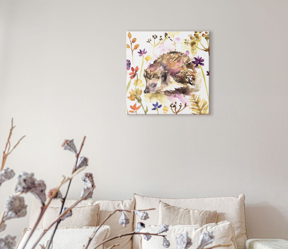 Jeżyk na tym obrazie został oddany z taką miłością do szczegółu, że niemal możesz poczuć jego miękkie futerko. Kombinacja akwarelowych odcieni z nutą dziecięcej niewinności czyni ten obraz idealnym prezentem lub dodatkiem do pokojów dziecięcych, bibliotek czy przestrzeni wypoczynkowych. Stylowy obraz wydrukowany na grubym bawełnianym płótnie. Krosna wykonane są z sosnowego drewna co stanowi solidną i efektowną całość. Zakupiony obraz jest gotowy do powieszenia na ścianie. Nasze produkty wykonywane są z dużą starannością oraz dbałością o szczegóły. Obraz posiada zadrukowane boki co gwarantuje estetyczne wykończenie bez konieczności dodatkowego oprawiania go.Obraz jest ostry a barwy nasycone. Boki są zadrukowane dlatego dodatkowa oprawa jest zbędna. Mocne, trwałe płótno o ciekawej fakturze. Gruba sosnowa Blejtrama.