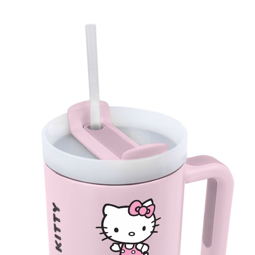 Hello Kitty Pink - kubek termiczny z uchem 1140 ml Oficjalny kubek termiczny Hello Kitty Pink o pojemności 1140 ml to idealny produkt dla fanów stylu kawaii. Podwójne ścianki pomagają utrzymać temperaturę napoju, a praktyczne ucho i zakrętka zapewniają wygodę użytkowania. Kolorowy design z Hello Kitty sprawia, że kubek świetnie sprawdzi się na co dzień lub jako prezent. Szczegóły techniczne: Pojemność: 1140 ml Izolacja: Podwójne ścianki Materiał: Tworzywo sztuczne Motyw: Hello Kitty Pink Licencjonowany produkt Oryginalny produkt Hello Kitty. Doskonały wybór do oferty prezentowej lub codziennego użytku.