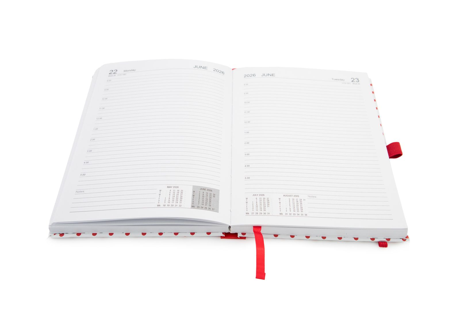 Hello Kitty - dziennik kalendarz 2026 Numer katalogowy: SR2402888 Producent: Pyramid International Dziennik Hello Kitty 2026 od Pyramid International w formacie A5. 168 stron w układzie tygodniowym, twarda okładka z gumką, tasiemka zakładka. Uroczy pastelowy design inspirowany Hello Kitty. Idealny do planowania w stylu kawaii. Szczegóły techniczne Format: A5 (14,8×21 cm) Liczba stron: 168 Układ: tygodniowy Okładka: twarda, z gumką Dodatki: tasiemka, miejsce na notatki Motyw: Hello Kitty Producent: Pyramid International Oryginalny produkt na oficjalnej licencji Sanrio, wyprodukowany przez Pyramid International.