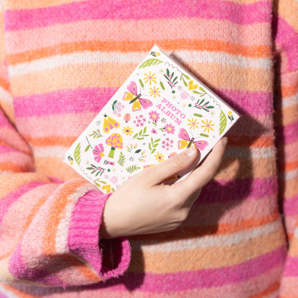 Album na zdjęcia Hello Spring Album w miękkiej okładcezabezpieczony foliową obwolutą. Jego strony posiadają kieszonkę z folii, która ułatwia umieszczanie fotografii. Album posiada 36stronna których umieścić możesz36 zdjęćw rozmiarze 10x15cm. Szczegóły techniczne: Wymiary zewnętrzne: x cm Wymiary strony:x cm Okładka: miękka, tworzywo sztuczne Karty: miękkie, tworzywo sztuczne, kieszenie Rodzaj albumu: zdjęcia wsuwane Wykończenie albumu: klejony Kolor kart: biały