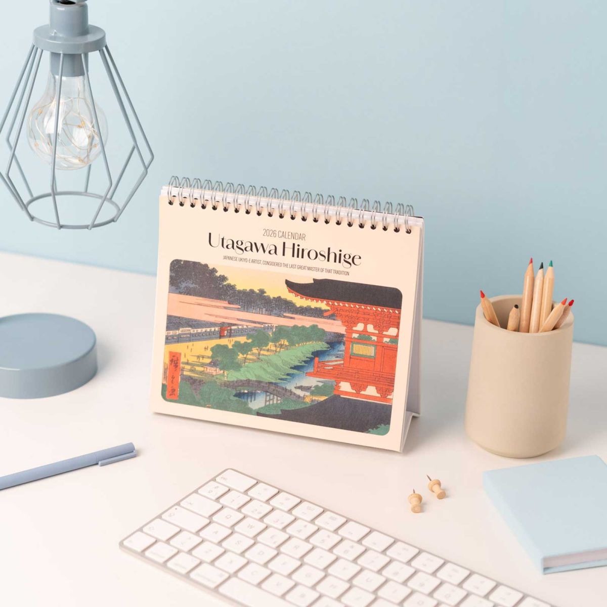 Hiroshige - biurkowy kalendarz 2026 Numer katalogowy: CS26005 Producent: Erik Kalendarz biurkowy Hiroshige 2026 od Erik to połączenie sztuki i praktycznego planowania. Każdy miesiąc zdobi dzieło japońskiego artysty Hiroshige, mistrza drzeworytu Ukiyo-e. Format 20x17 cm, spiralna oprawa i stojąca podstawa czynią go idealnym dodatkiem do biurka. Wykonany z papieru FSC, stanowi ekologiczny i estetyczny wybór. Doskonały prezent dla fanów japońskiej kultury i miłośników sztuki klasycznej. Szczegóły techniczne Format: 20x17 cm Rok: 2026 Materiał: papier FSC Układ: miesięczny Oprawa: spiralna ze stojakiem Motyw: Hiroshige Producent: Erik Oryginalny produkt Hiroshige 2026 od Erik, wykonany z certyfikowanego papieru FSC.