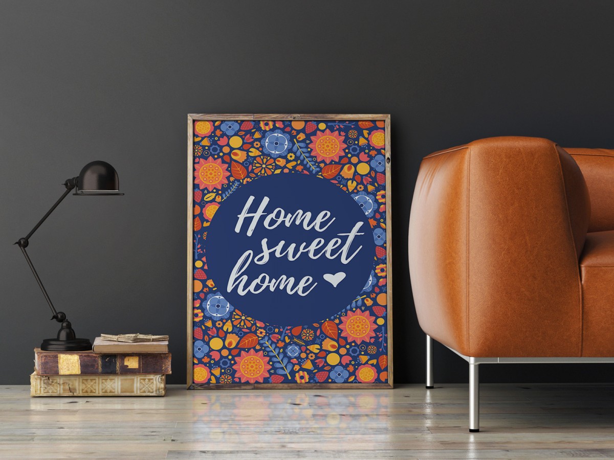 Plakat na ścianę, zatytułowany Home sweet home Ciekawy i oryginalny plakat na ścianę. Wyprodukowany na papierze o wysokiej gramaturze w cyfrowej jakości. Plakat wykonany przez polskiego producenta. Świetnie nadaje się do oprawienia w ramy lub antyramy. Specyfikacja papier satynowy 220g/m2 druk cyfrowy wymiary plakatu 61x91,5 cm