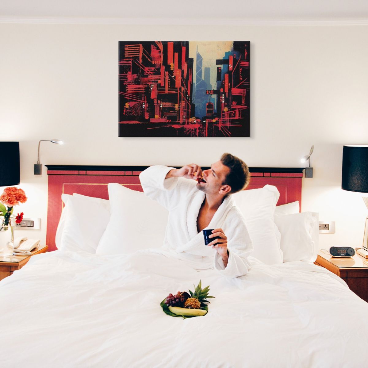 Hong Kong obraz na płótnie naciągnięty na sosnowe krosna. Po wyjęciu z opakowania obraz można od razu powiesić na ścianie. Nasze produkty wykonywane są z dużą starannością oraz dbałością o szczegóły. Obraz posiada zadrukowane boki co gwarantuje estetyczne wykończenie bez konieczności dodatkowego oprawiania go.