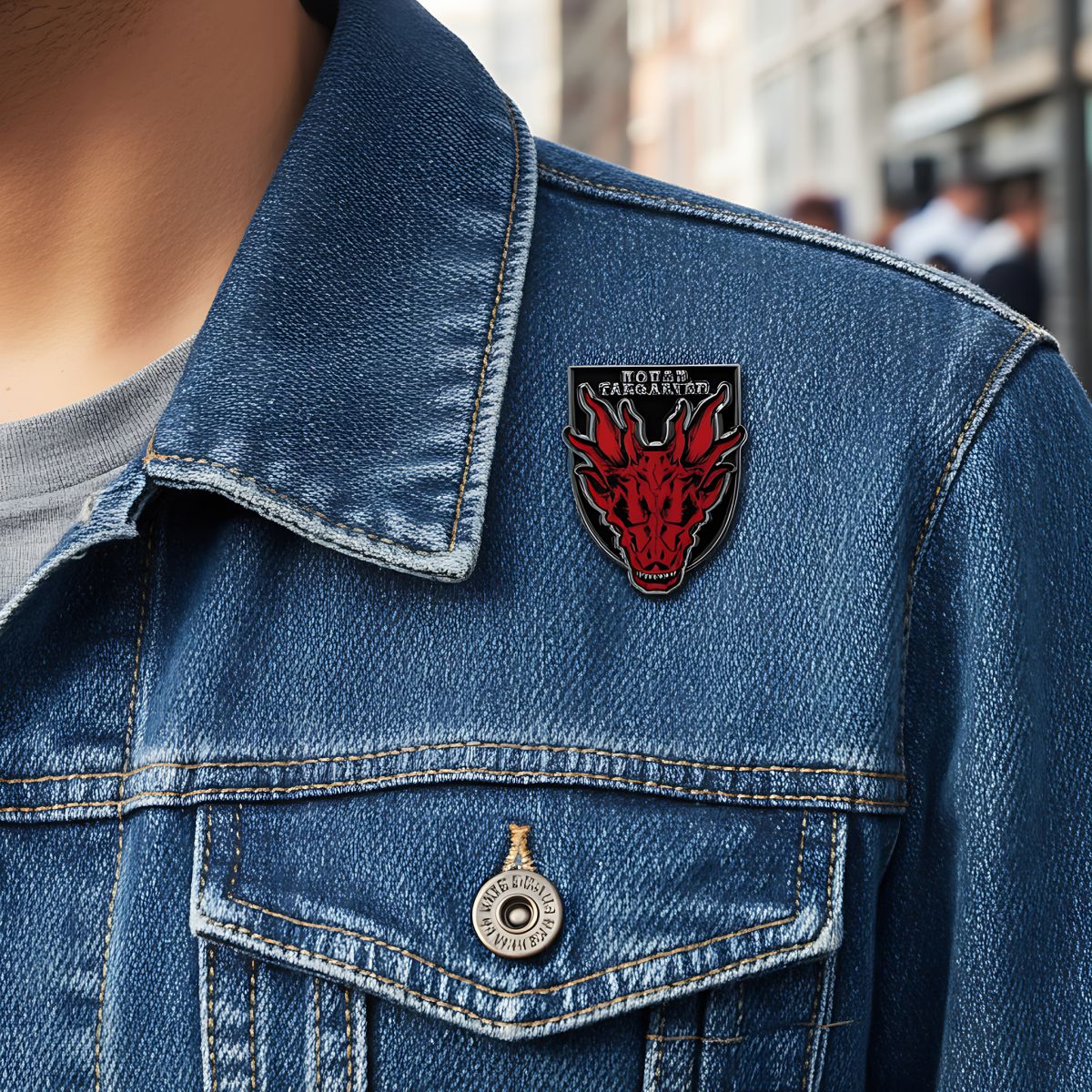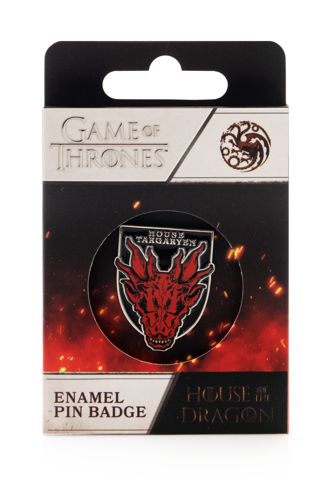 e Of The Dragon - przypinka 2,5x3,5 cm Elegancka przypinka z motywem herbu rodu Targaryen z kultowego serialu "House Of The Dragon". Przypinka emaliowana, z solidnym metalowym wykończeniem, co zapewnia trwałość i intensywność kolorów. Idealna do przypięcia na plecaku, torbie lub kurtce, pozwalając na wyrażenie swojego przywiązania do świata Westeros. Doskonały gadżet kolekcjonerski dla fanów "Gry o Tron" i jej prequela, który pozwala nosić symbol smoka na co dzień. Szczegóły techniczne Materiał: metal Wymiary: 2,5 x 3,5 cm Zapięcie: klasyczna agrafka Licencja: oficjalna "House Of The Dragon" Licencjonowany produkt, który świetnie sprawdzi się jako prezent dla fanów. Kupując, wspierasz oficjalnych twórców i producentów.