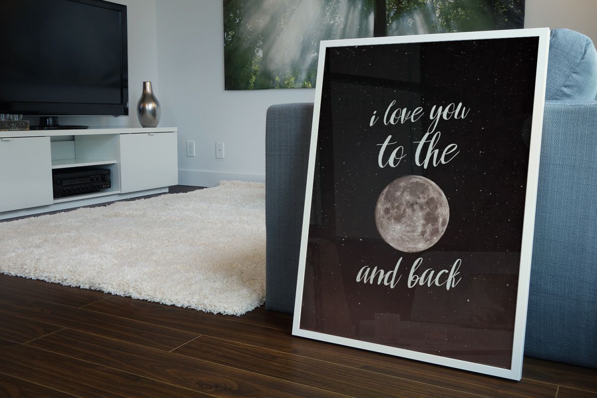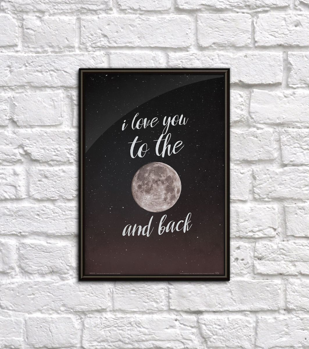 Plakat na ścianę, zatytułowany I love you to the moon and back Ciekawy i oryginalny plakat na ścianę. Wyprodukowany na papierze o wysokiej gramaturze w cyfrowej jakości. Plakat wykonany przez polskiego producenta. Świetnie nadaje się do oprawienia w ramy lub antyramy. Specyfikacja papier satynowy 220g/m2 druk cyfrowy wymiary plakatu 21x29,7 cm