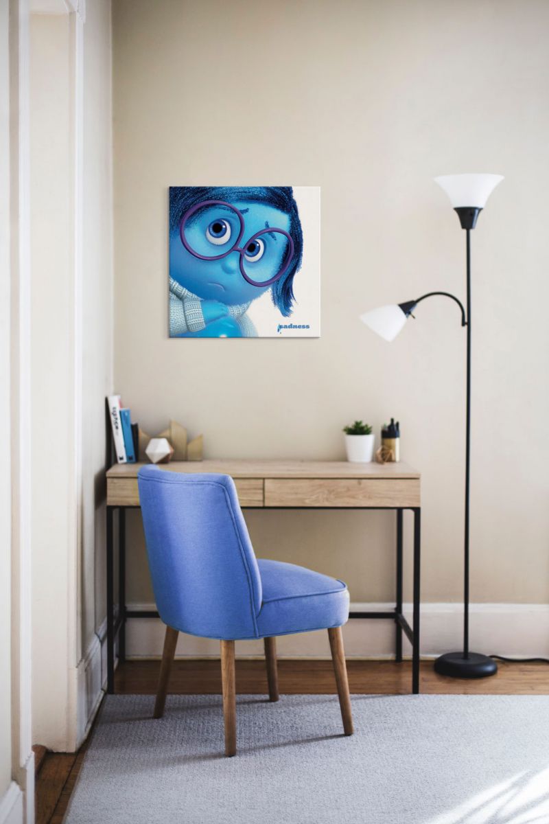 Obraz na ścianę noszący nazwę Inside Out (Sadness). Szukasz oryginalnej, ekskluzywnej dekoracji na ścianę? Ten obraz jest dla Ciebie! trwałe kolory i fantastyczna jakość., obrazy charakteryzuje wysokie nasycenie barw i ostrość, nie sposób oderwać od nich wzrok. Kolory utrzymują się przez długie lata. Doskonałej jakości płótno to gwarancja naturalnego wyglądu i trwałości obrazu.