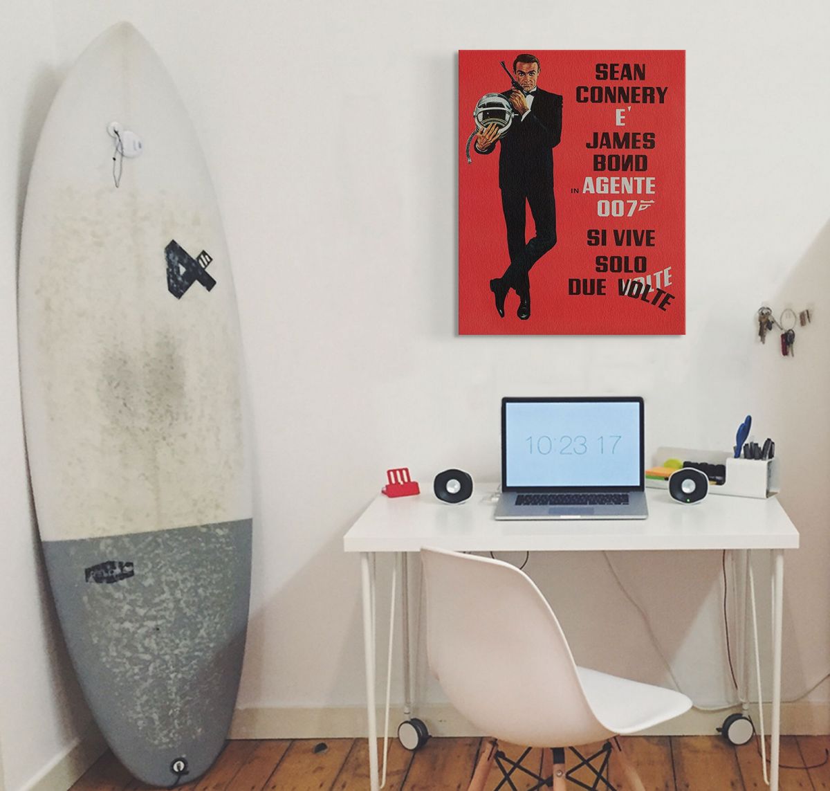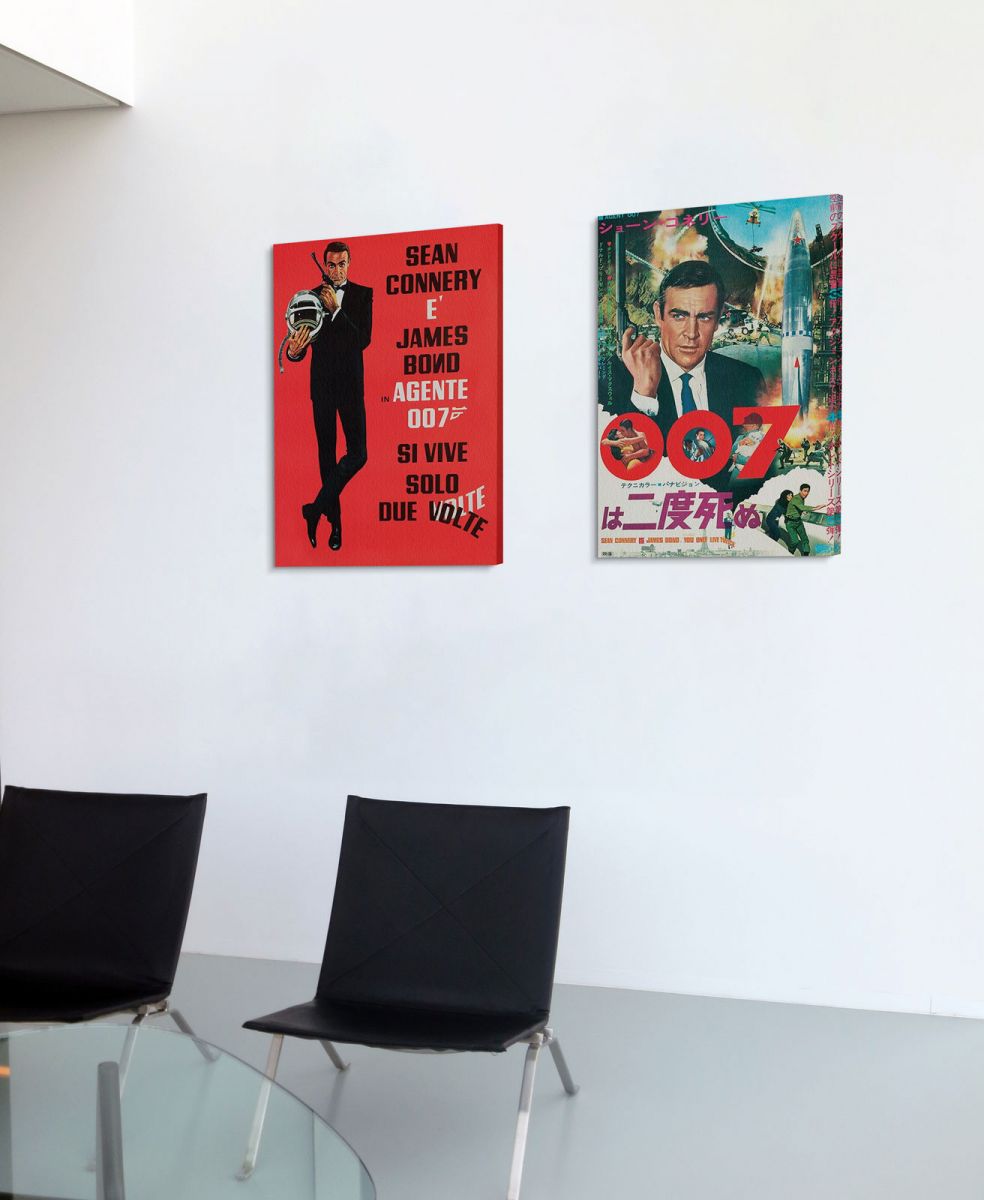 Obraz na ścianę noszący nazwę James Bond (Si Vive Solo Due Volte). Szukasz oryginalnej, ekskluzywnej dekoracji na ścianę? Ten obraz jest dla Ciebie! trwałe kolory i fantastyczna jakość., obrazy charakteryzuje wysokie nasycenie barw i ostrość, nie sposób oderwać od nich wzrok. Kolory utrzymują się przez długie lata. Mocne bawełniane płótno wygląda naturalnie i oddaje charakter autentyczności obrazu.
