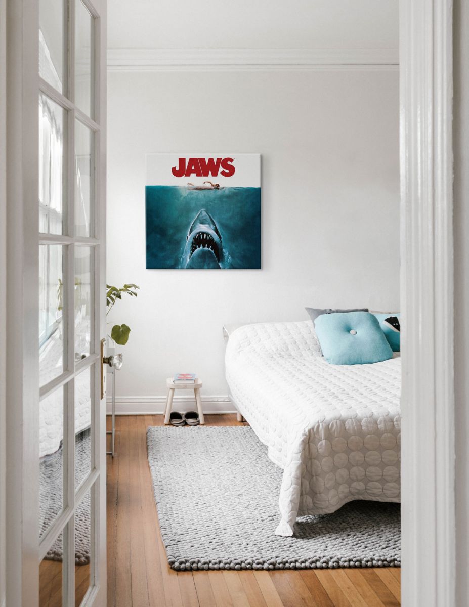 Obraz na ścianę noszący nazwę JAWS (ONE SHEET). Szukasz oryginalnej, ekskluzywnej dekoracji na ścianę? Ten obraz jest dla Ciebie! doskonała jakość barw i jakość wykonania., obrazy charakteryzuje wysokie nasycenie barw i ostrość, nie sposób oderwać od nich wzrok. Kolory utrzymują się przez długie lata. Doskonałej jakości płótno to gwarancja naturalnego wyglądu i trwałości obrazu.