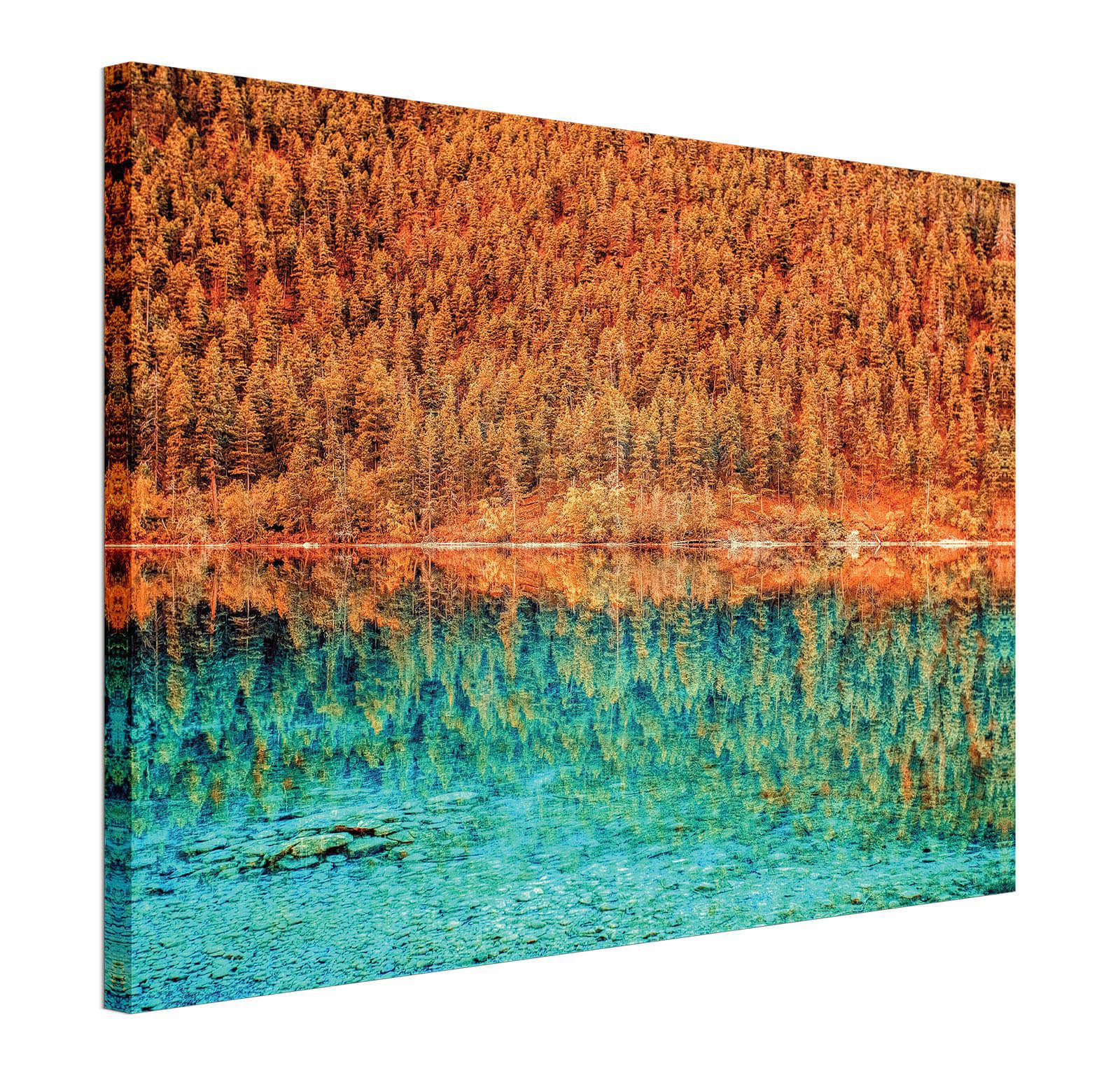 Jesienne drzewa nad jeziorem - obraz na płótnie