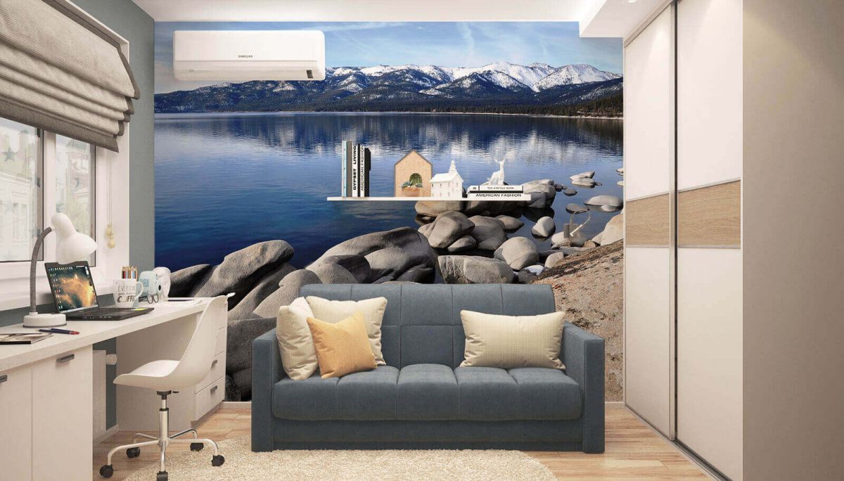Jezioro Tahoe - fototapeta Nice Wall o wymiarach 320x230 cm Chciałbyś odmienić wnętrze swojego mieszkania w szybki i prosty sposób? Możesz uzyskać wspaniały efekt bez zbędnych remontów i wielkich wydatków wybierając fototapetę z kolekcji Nice wall. Łatwo się kładzie Nasze fototapety ze względu na swój duży rozmiar podzielona są na 6 brytów, dzięki czemu łatwo położysz je na ścianie. Do każdego opakowania producent dołączył instrukcję, która poprowadzi Cię przez proces klejenia. Zalecany przez producenta klej to Pronicel W Extra. Fantastyczne, żywe barwy Fototapety z kolekcji Nice wall wykonane są w druku cyfrowym. Oznacza to, że otrzymujesz obraz najwyższej jakości, który będzie zachwycał ostrością i soczystymi barwami. Możesz mieć pewność, że Twoi goście nie przejdą obok tego dzieła obojętnie i będą zazdrościć Ci pięknego wnętrza. Dodatkowe informacje: Wydruk na satynowym, matowym podłożu o gramaturze 135 g/m2. Wyprodukowana przez Polskiego producenta, oryginalna fototapeta, która posiada licencję. Sposób czyszczenia: sucha ściereczka lub miotełka do kurzu Instrukcja klejenia Kliknij [pobierz]