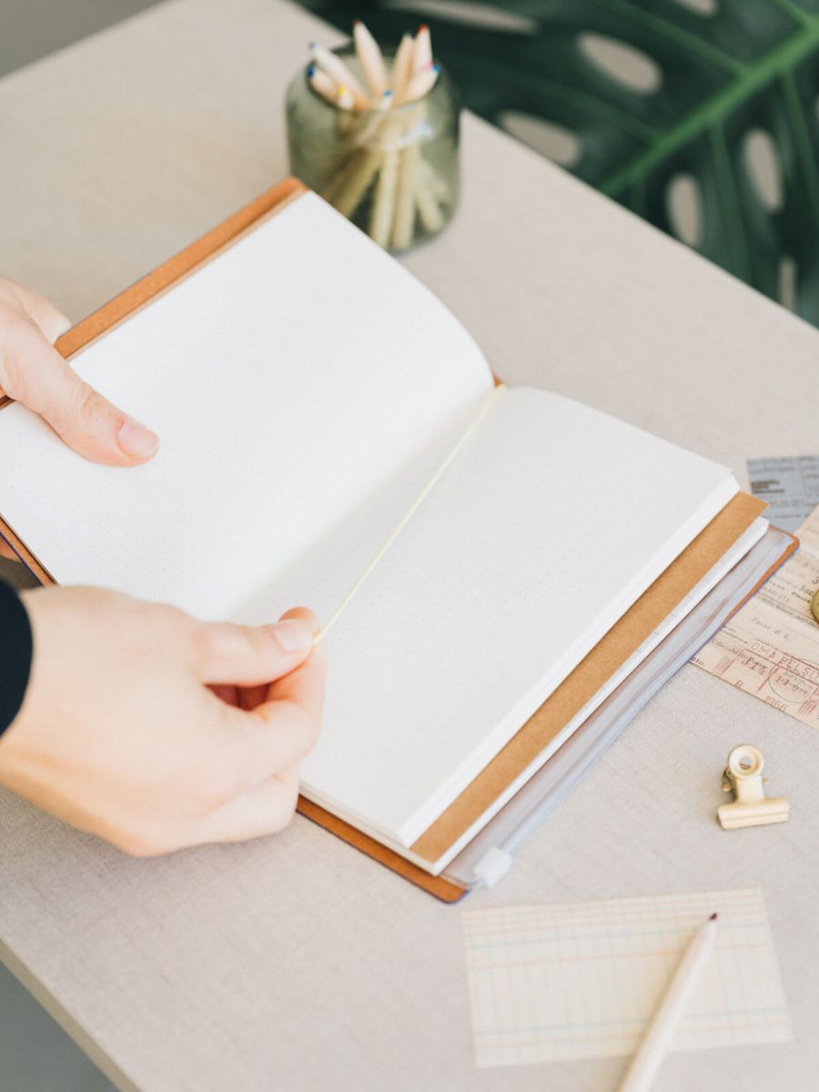 Wewnątrz znajdziesz dwie wymienne książeczki z 80 arkuszami, dostępne w wersji kropkowanej i liniowej, co umożliwia dostosowanie notesu do własnych potrzeb - czy to do pisania, czy rysowania.