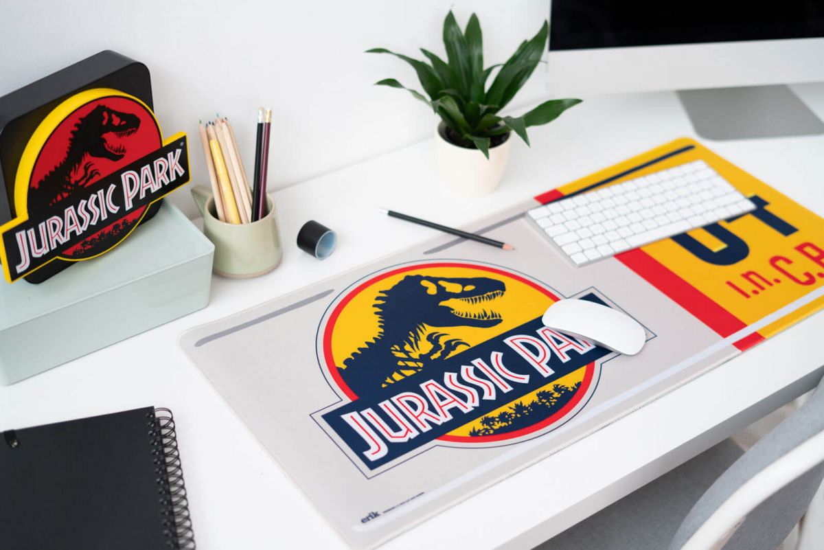 Podkładka pod myszkę Jurassic Park Oryginalne podkładki na biurko pod myszkę zadrukowane oryginalnymi grafikami. Twoje ulubione, popularne motywy na podkładce umilą Ci pracę. Podkładki chronią Twoje biurko przed otarciami i rysami. To oryginalny, oficjalny gadżet z gwarancją producenta. Szczegóły techniczne: Podkładka ma wymiary:80x35 cm.