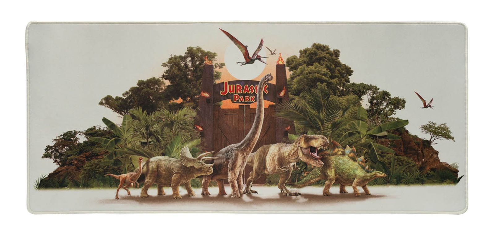 Jurassic Park podkładka pod myszkę Biurkowa podkładka z motywem Jurassic Park, tekstylna, wodoodporna, z gumowym spodem antypoślizgowa i trwała. Szczegóły techniczne Motyw: Jurassic Park Materiał: tkanina + guma Wymiary: 80 x 35 cm Właściwości: wodoodporna, wzmocnione brzegi, antypoślizgowa Oryginalny, licencjonowany produkt idealny na biurko fana dinozaurów.