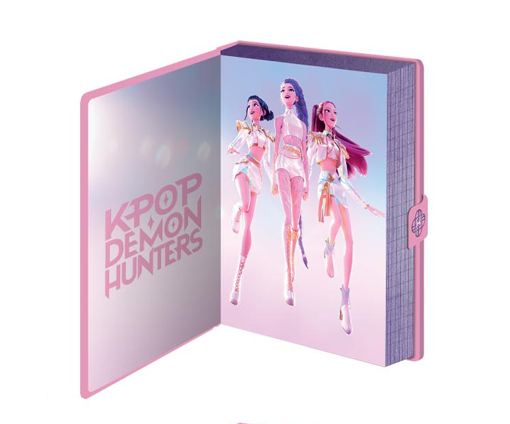 K-Pop Demon Hunters Irridescent to notes A5 z twardą okładką, który wyróżnia się opalizującym wykończeniem i motywem Huntrix z serii K-Pop Demon Hunters.