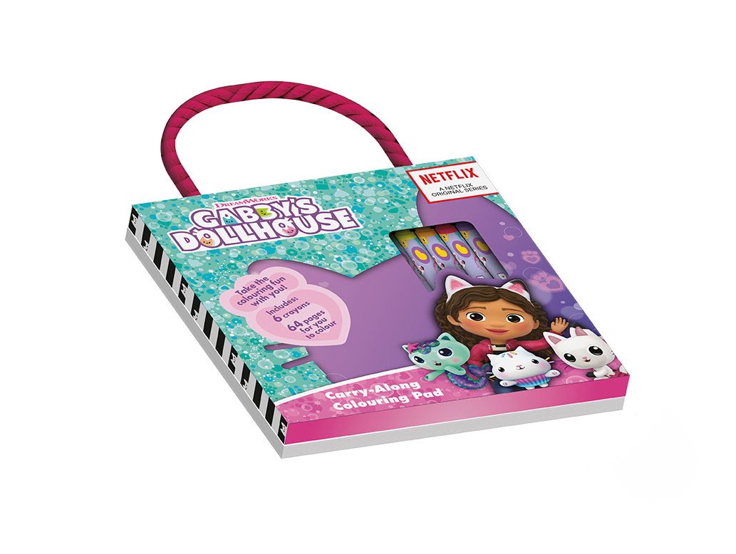 Koci Domek Gabi Carry Along - bloczek z kolorowankami Numer katalogowy: SR2404277 Producent: Pyramid International Wymiary: 15x15 cm Bloczek z kolorowankami Koci Domek Gabi Carry Along to kompaktowy zestaw kreatywny przygotowany z myślą o wygodnym kolorowaniu w domu i poza nim. Dzięki uchwytowi można łatwo przenosić bloczek, a format 15x15 cm sprawia, że zestaw dobrze mieści się w plecaku, torbie lub bagażu podręcznym. W środku znajduje się 64 strony do kolorowania, co daje dużo miejsca na zabawę i rozwijanie kreatywności, a dołączone 6 kredek pozwala od razu zacząć bez dobierania dodatkowych przyborów. Motywy inspirowane Gabby’s Dollhouse zachęcają do tworzenia własnych kompozycji i sprawiają, że zestaw jest atrakcyjny dla dzieci, które lubią bajkowy, kolorowy styl. To praktyczna propozycja na wyjazdy, spokojne popołudnia w domu oraz jako zestaw do zajęć plastycznych, gdy liczy się wygoda i kompletna zawartość w jednym miejscu. Szczegóły techniczne Rodzaj: bloczek z kolorowankami Liczba stron: 64 strony do kolorowania W zestawie: 6 kredek Format: poręczny zestaw z uchwytem Motyw: Gabby’s Dollhouse Oryginalny produkt na oficjalnej licencji Gabby’s Dollhouse.