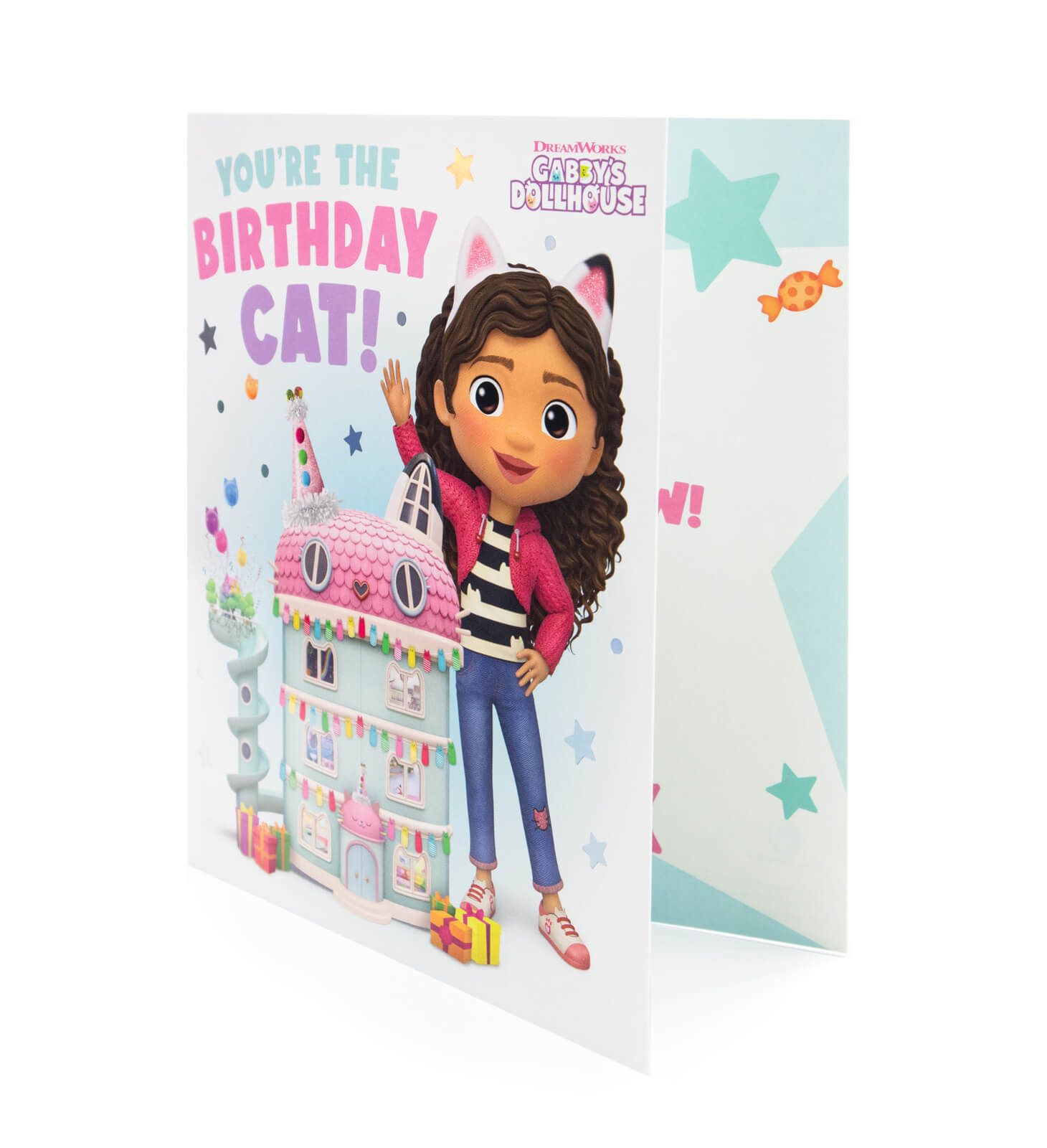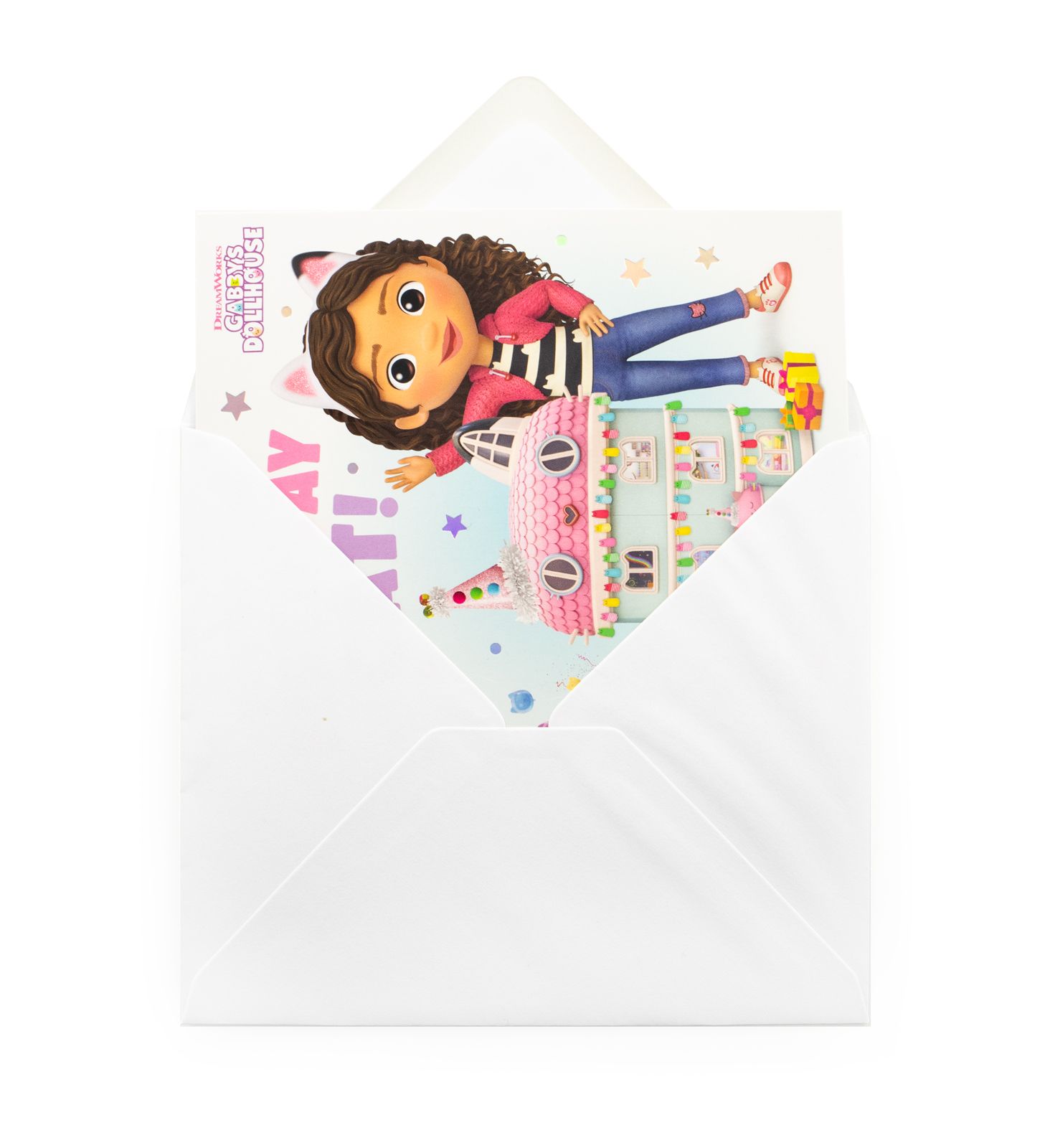 Koci Domek Gabi - kartka urodzinowa Kartka Koci Domek Gabi w poziomym formacie z kolorową grafiką inspirowaną popularną animacją. Wyraziste barwy i estetyczny projekt sprawiają, że kartka wyróżnia się na tle klasycznych wzorów. To starannie wykonany, licencjonowany dodatek, który świetnie uzupełnia prezent. Szczegóły techniczne Wymiary: 18 x 16 cm Motyw: Koci Domek Gabi Układ: poziomy Przeznaczenie: kartka urodzinowa Licencjonowany produkt Produkt na oficjalnej licencji DreamWorks.
