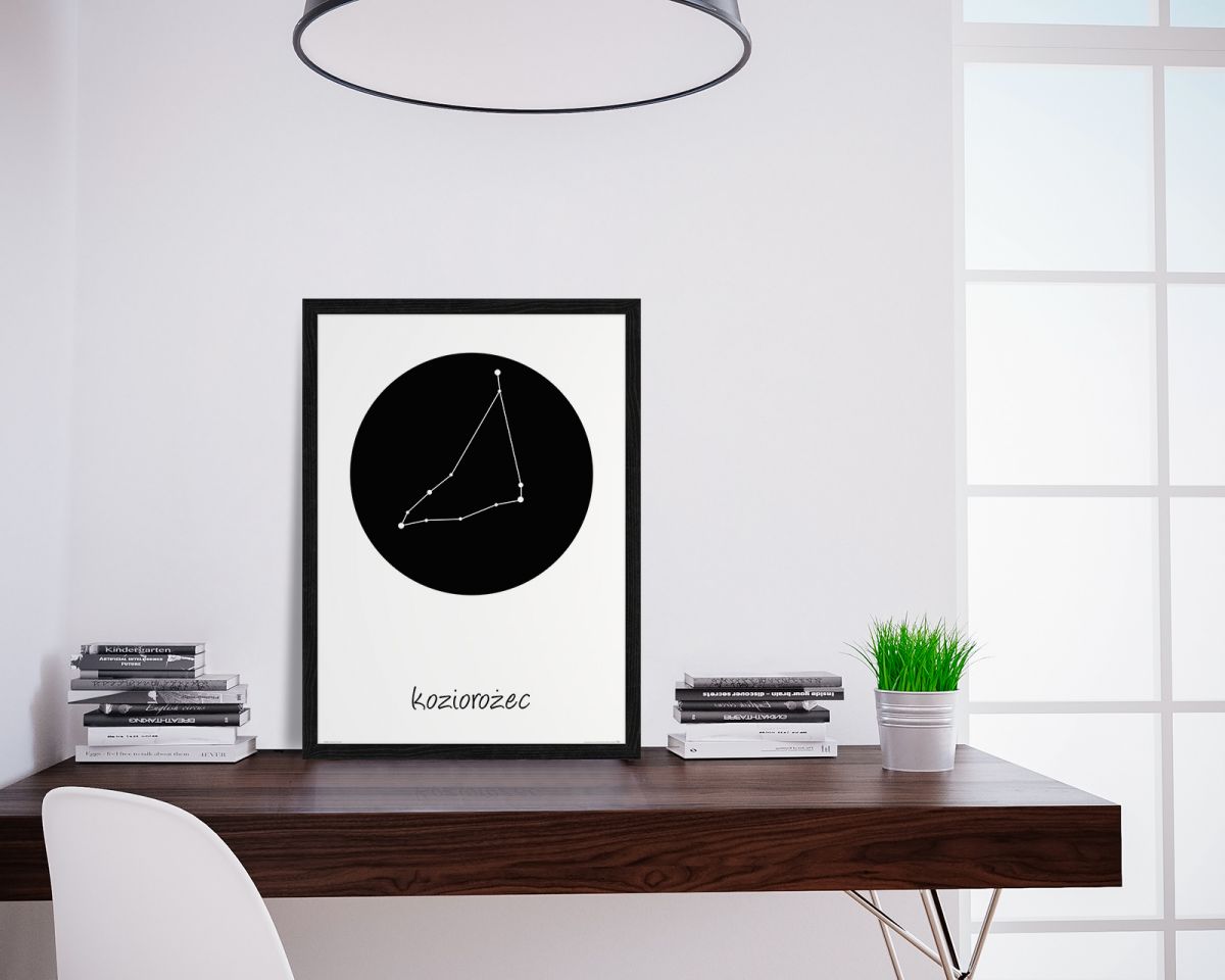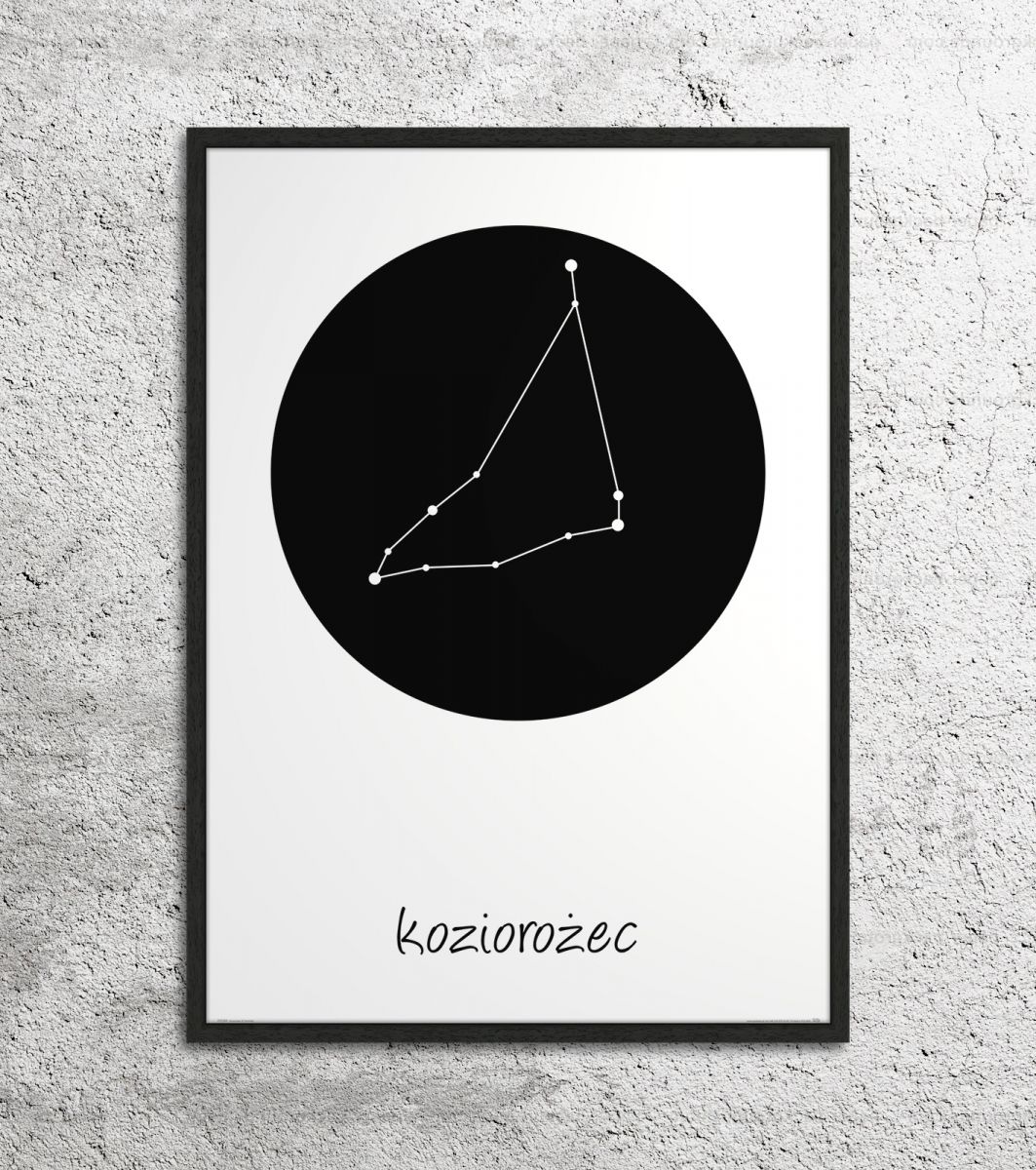Plakat z mapą na ścianę, zatytułowany Koziorożec konstelacja w kole Ciekawy i oryginalny plakat na ścianę. Wyprodukowany na papierze o wysokiej gramaturze w cyfrowej jakości. Plakat wykonany przez polskiego producenta. Świetnie nadaje się do oprawienia w ramy lub antyramy. Specyfikacja papier satynowy 220g/m2 druk cyfrowy wymiary plakatu 50x70 cm