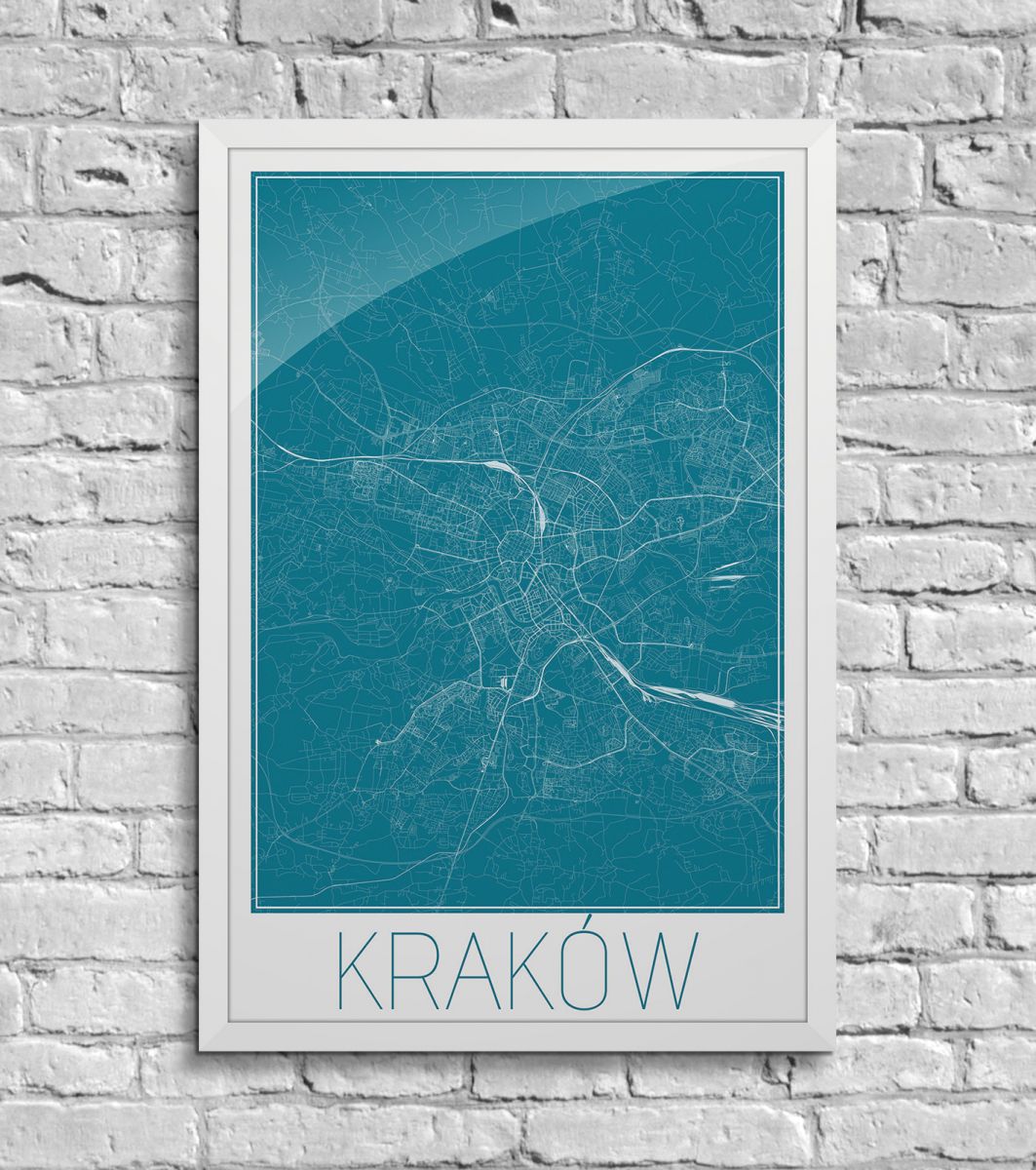 Artystyczna mapa na ścianę, zatytułowana Kraków - Niebieska mapa Ciekawy i oryginalny plakat na ścianę. Wyprodukowany na papierze o wysokiej gramaturze w cyfrowej jakości. Plakat wykonany przez polskiego producenta. Świetnie nadaje się do oprawienia w ramy lub antyramy. Specyfikacja papier satynowy 220g/m2 druk cyfrowy wymiary plakatu 61x91,5 cm