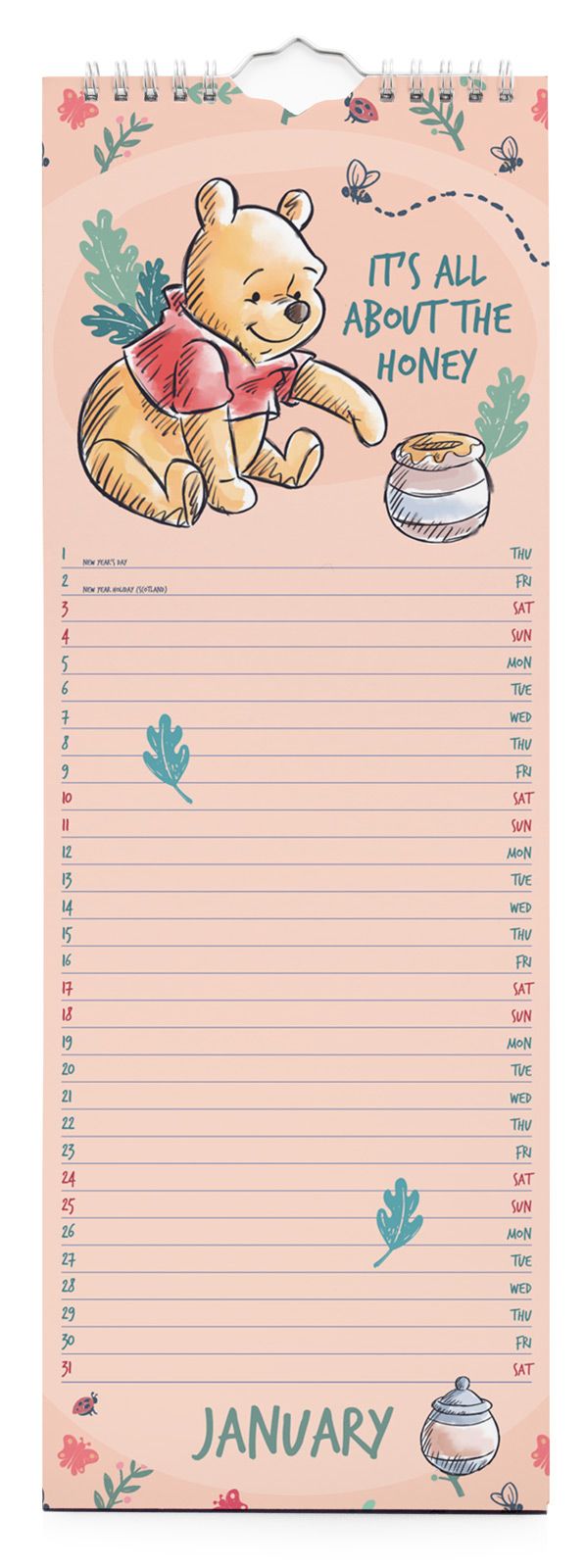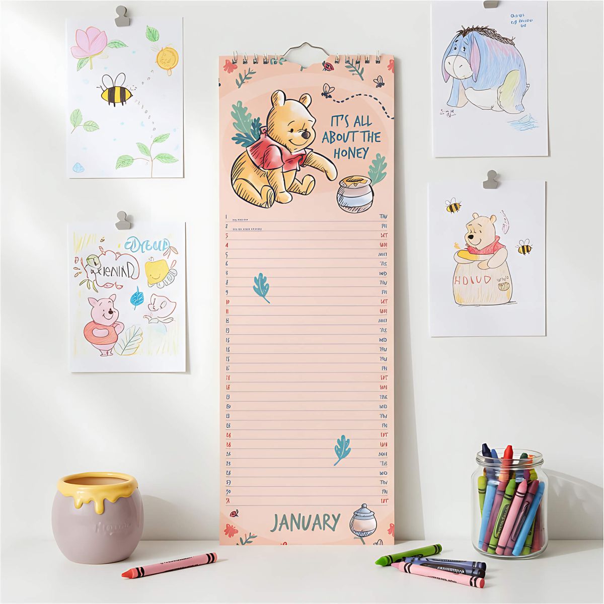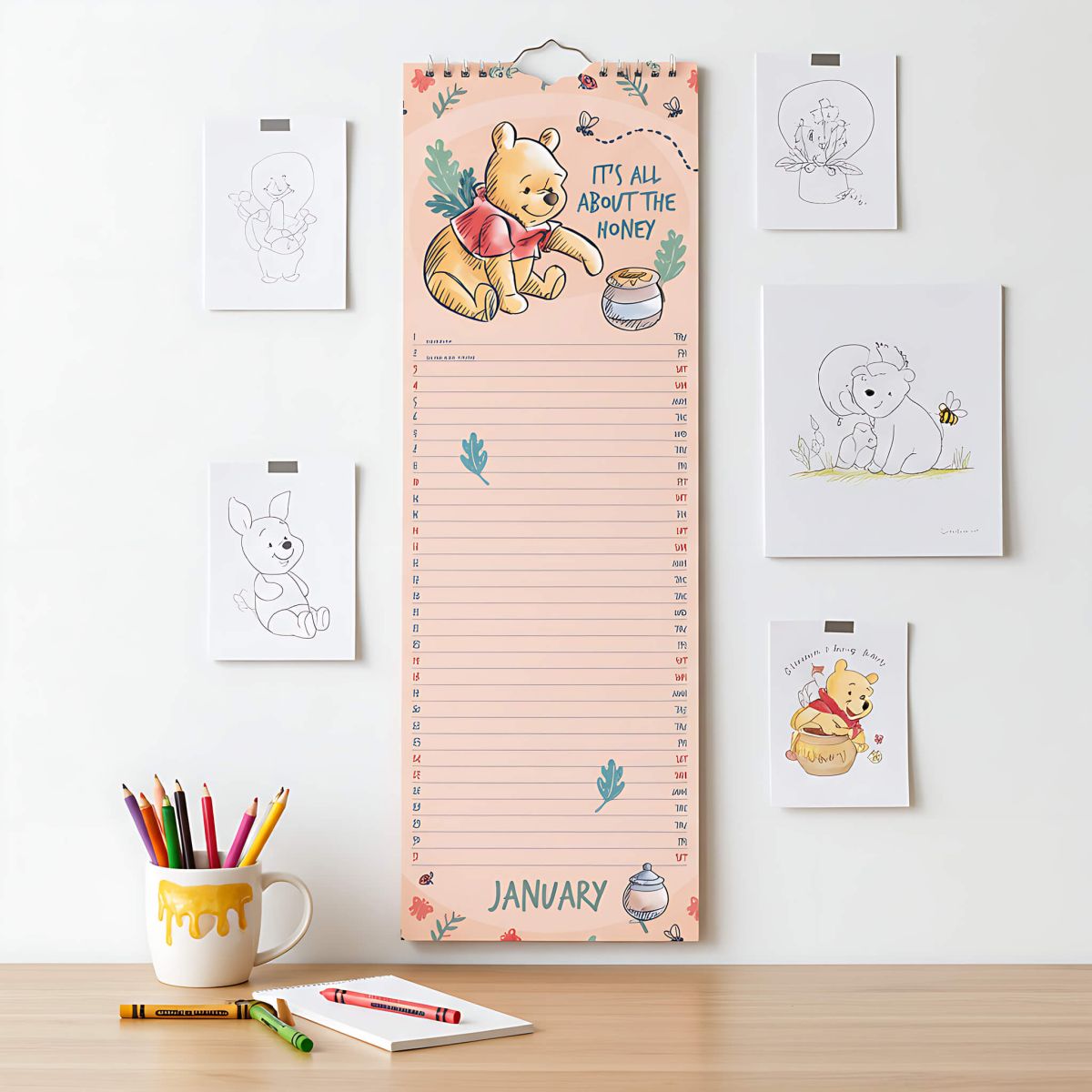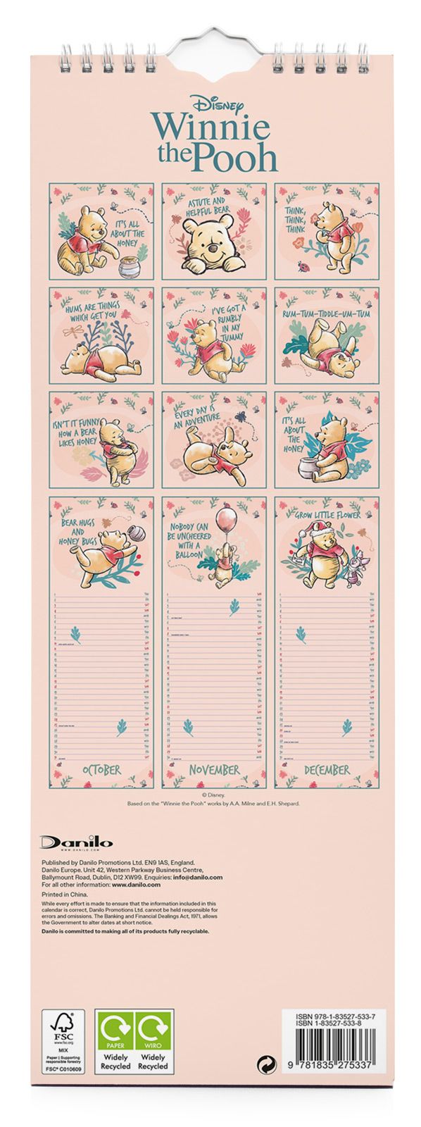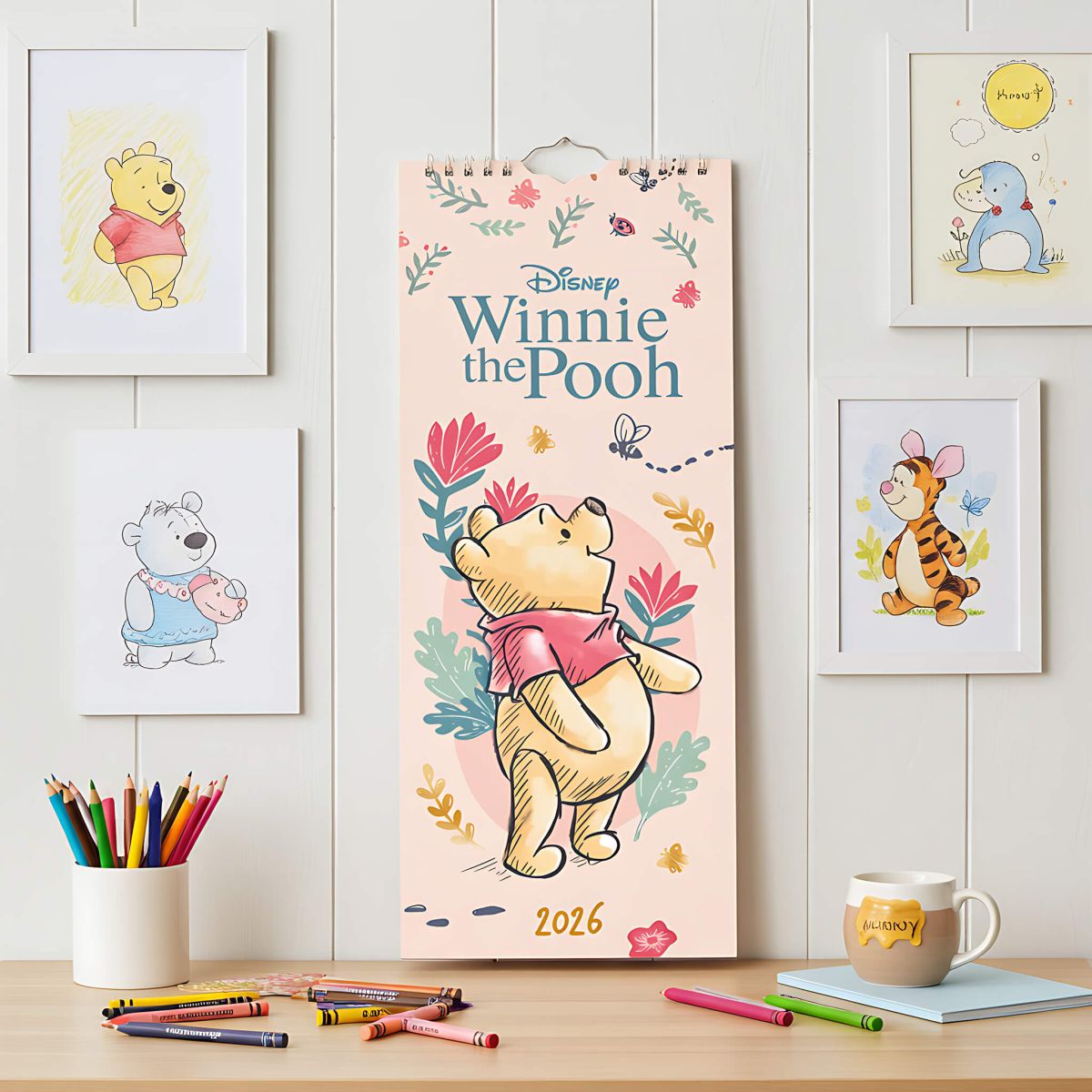 Kubuś Puchatek slim kalendarz ścienny 2026 Licencjonowany slim wall kalendarz z Kubusiem Puchatkiem. Kompaktowy format, 12 ilustracji, miesięczne kalendarium idealny do wąskich ścian i prezentów. Format: Slim Wall (? 42 × 14,4 cm) Układ: miesięczny z grafikami i kalendarium Ilość stron: 12 Ilustracje: 12 motywów Kubusia Puchatka Licencjonowany produkt Oficjalna licencja Disney.