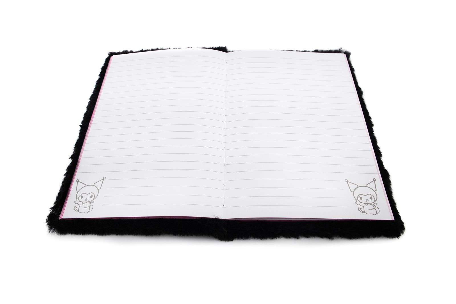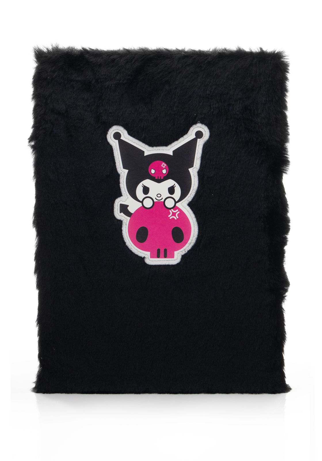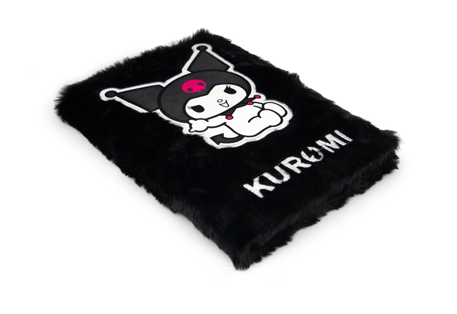 tes A5 Kuromi Rock Out - pluszowy Stylowy notes A5 z postacią Kuromi i miękką, czarną pluszową okładką.