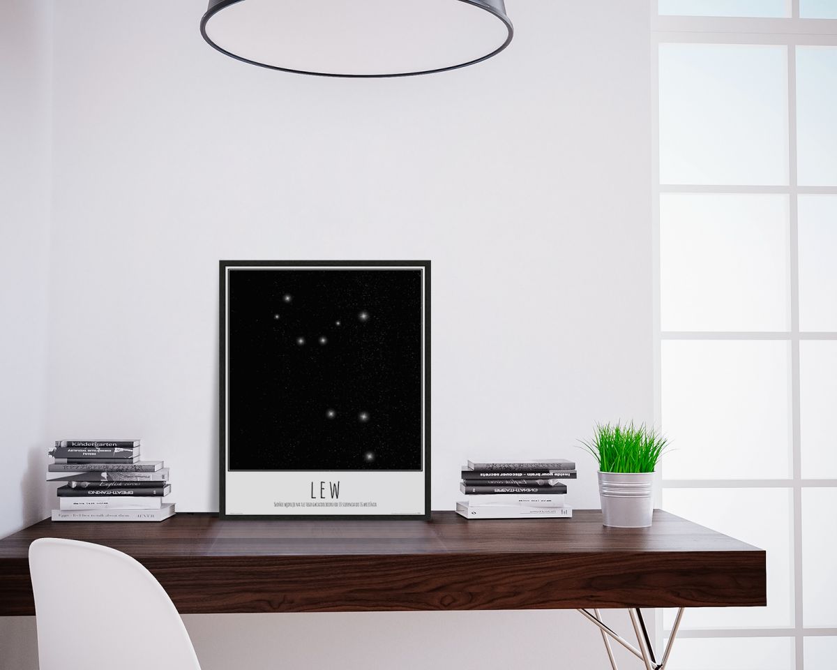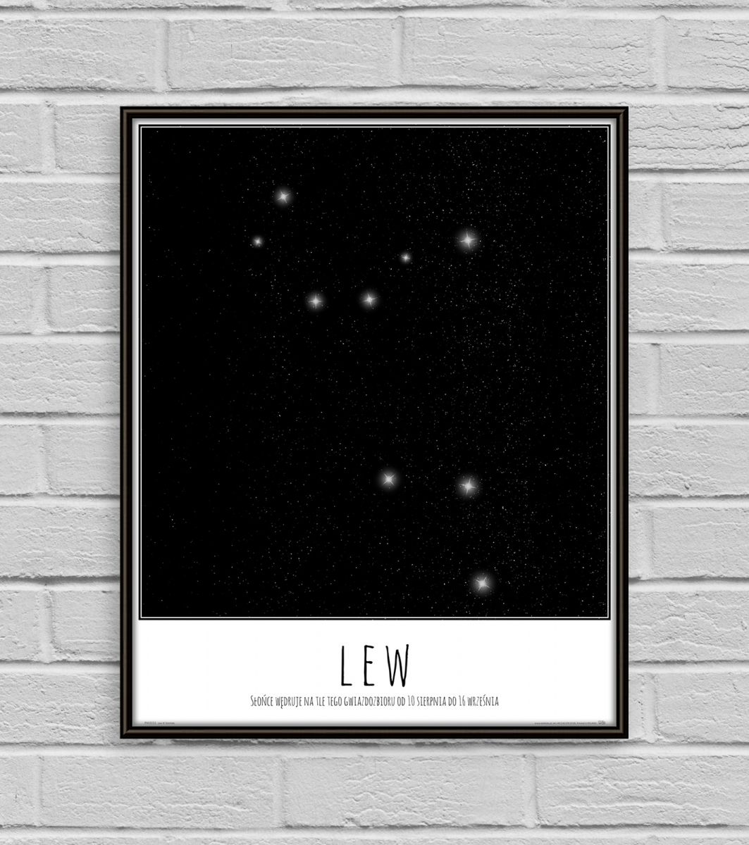 Plakat z mapą na ścianę, zatytułowany Lew konstelacja gwiazd z opisem Ciekawy i oryginalny plakat na ścianę. Wyprodukowany na papierze o wysokiej gramaturze w cyfrowej jakości. Plakat wykonany przez polskiego producenta. Świetnie nadaje się do oprawienia w ramy lub antyramy. Specyfikacja papier satynowy 220g/m2 druk cyfrowy wymiary plakatu 40x50 cm