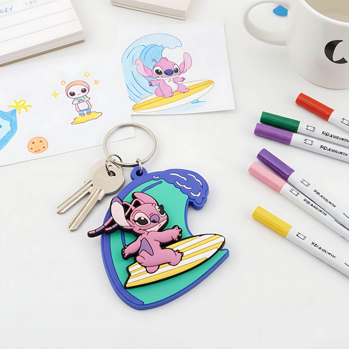Lilo i Stitch Angel - brelok Numer katalogowy: SK2404445 Producent: Pyramid International Wymiary: 4,5 x 6 cm Brelok z postacią Angel w pastelowej odsłonie. Zawieszka z PVC jest lekka i elastyczna, a metalowe kółko zapewnia pewne mocowanie do kluczy lub bagażu. Nadruk zachowuje kolor i czytelność podczas codziennego użytkowania. Szczegóły techniczne: Materiał: PVC zawieszka + metalowe kółko Motyw: Lilo i Stitch - Angel Zastosowanie: akcesorium do kluczy i plecaka Oryginalny produkt na oficjalnej licencji Disney - Pyramid International.