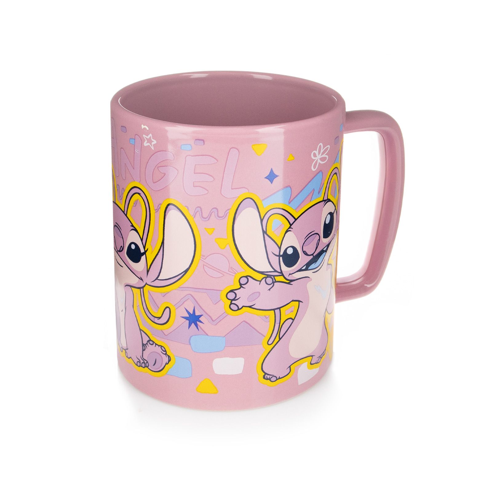 Lilo i Stitch Angel - kubek w futerku Wyjątkowy kubek inspirowany Angel z filmu "Lilo i Stitch". Wyposażony w zdejmowaną, miękką osłonę zapewniającą komfort i ochronę dłoni. Idealny na gorące napoje. Szczegóły techniczne: Materiał: Ceramika Pojemność: 458 ml Czyszczenie: Osłona zdejmowana, myć ręcznie Licencjonowany produkt Oficjalny produkt Disneya, doskonały dla fanów serii "Lilo i Stitch".