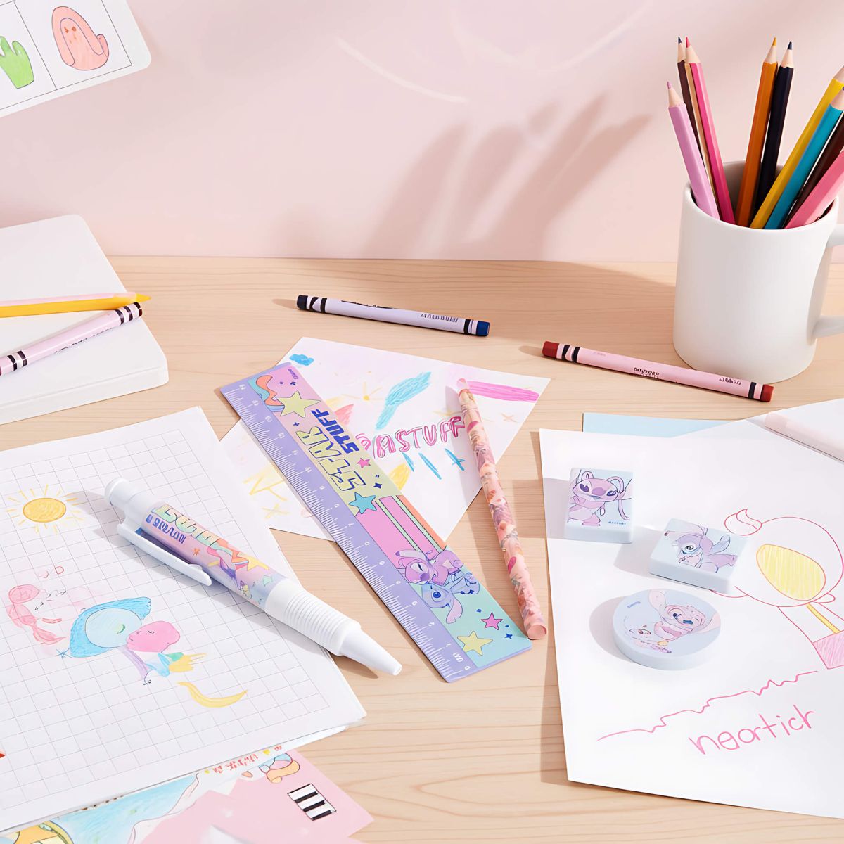 Lilo i Stitch Planetary - przybory szkolne Numer katalogowy: SR2404696 Producent: Pyramid International Wymiary: 8,5 x 22 cm Kompaktowy komplet Lilo i Stitch Planetary zawiera kluczowe akcesoria do pisania i rysowania w smukłym etui. Kosmiczna szata graficzna Disneya dodaje energii, a przejrzyste opakowanie ułatwia organizację. To praktyczny zestaw, który sprawdza się na lekcjach, w domu i w podróży. Szczegóły techniczne: Zawartość: linijka 15 cm, ołówek, długopis, gumka, temperówka Motyw: Lilo i Stitch - Planetary Opakowanie: etui z uchwytem Oryginalny produkt na oficjalnej licencji Disney.