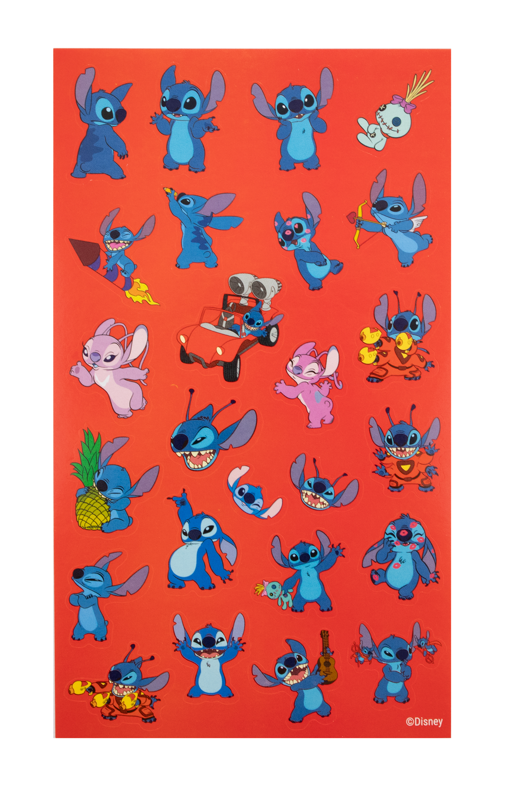 Lilo i Stitch - zestaw naklejek wielokrotnego użytku Kolorowe naklejki z bohaterami bajki Lilo i Stitch to świetny wybór dla fanów Disneya. Tropikalne wzory i uroczy Stitch dodadzą radości każdemu przedmiotowi od zeszytu po telefon. Szczegóły techniczne: Rodzaj: Naklejki wielokrotnego użytku Zestaw: ok. 25 sztuk Wymiary arkuszy: 19,5x9,5 cm Oryginalny, licencjonowany produkt Disneya idealny jako upominek lub dodatek do kreatywnej zabawy.